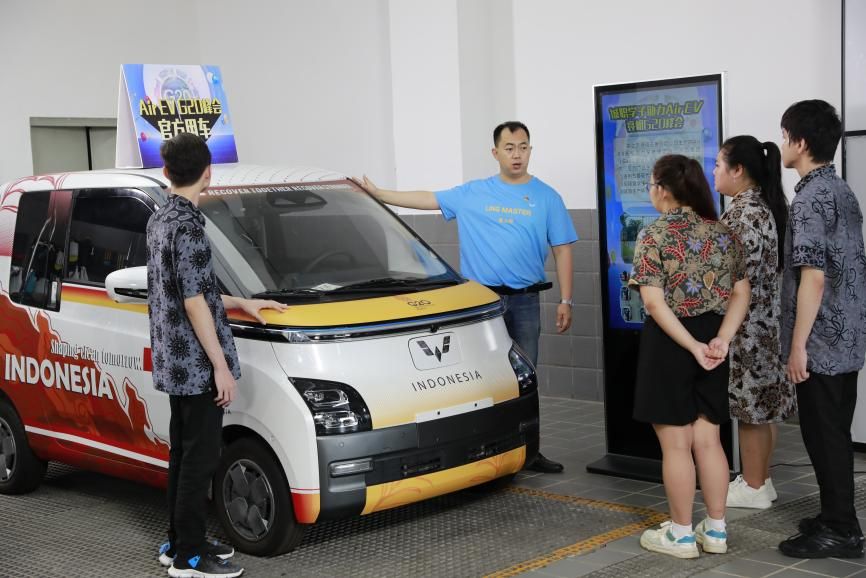 向印尼学生介绍新能源汽车-Air EV G20峰会官方用车