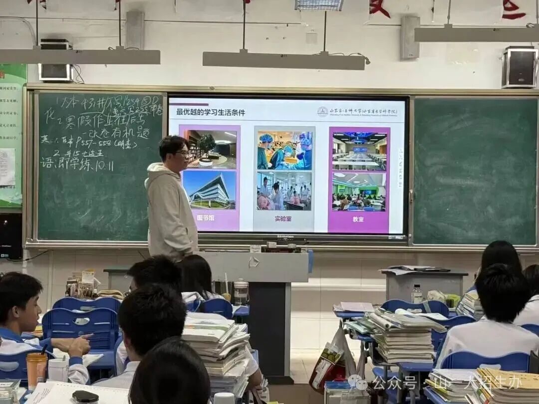 此次回母校宣讲,对我而言不仅是一次简单的大学宣传,更是一场与青春的重逢、一次与初心的对话。再次踏入海中校园,熟悉的教学楼、亲切的老师、鲜活的面孔,都让我倍感温暖,也更感恩母校的培养——正是在这里的三年时光,锤炼了我的意志、奠定了我的基础,让我有机会走进理想大学,追逐医学梦想。作为山东第一医科大学的学子,能向母校学弟学妹介绍自己的大学、传递医学的温度与力量,我倍感荣幸。在准备宣讲的过程中,我重新梳理了大学生活,更深入地了解了学校与专业,也更加坚定了初心——努力学好专业知识,未来成为一名有温度、有担当的医务工作者。