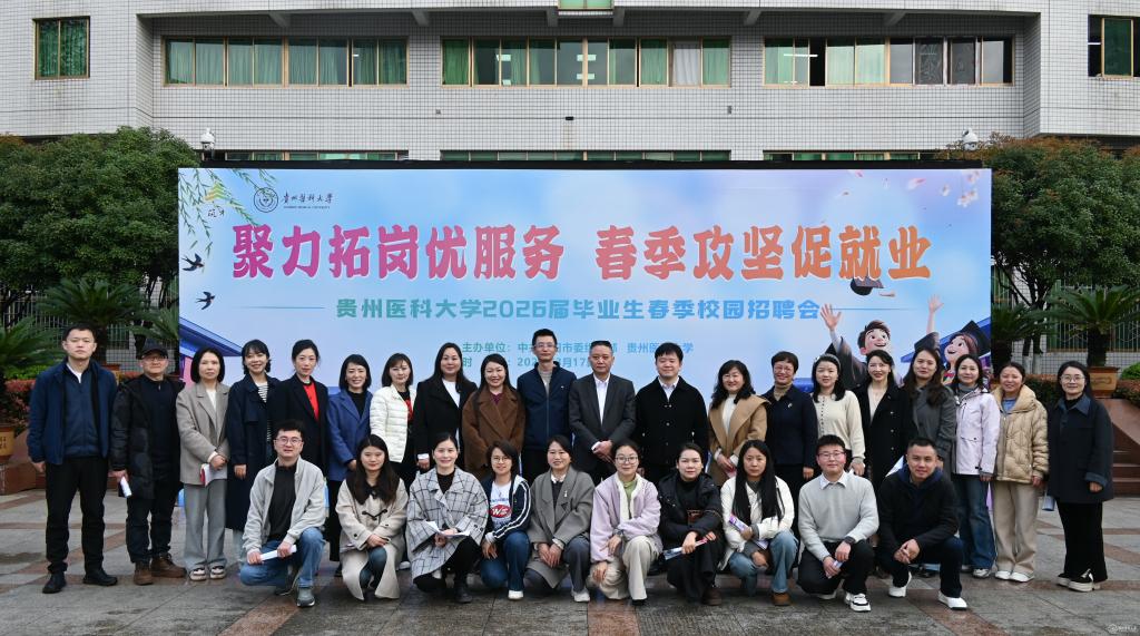 俞松强调,就业是民生之本,更是检验学校人才培养质量的核心标尺。学校始终将毕业生就业工作置于重中之重的位置,坚持“走出去”引资源与“请进来”搭平台双向发力,持续深化访企拓岗、校地协同、精准服务等重点工作,全力拓宽就业渠道、提升毕业生就业质量。他寄语全体毕业生,要传承弘扬“诚於己、忠于群、敬往思来”的校训精神,树立科学理性的择业观,把个人职业理想融入健康中国建设和贵州医疗卫生事业高质量发展大局,在服务社会、守护民生健康中实现人生价值。同时要求全校各单位、各部门压实就业工作主体责任,强化部门协同、上下联动,以更务实的举措、更优质的服务,全力护航毕业生实现高质量充分就业。