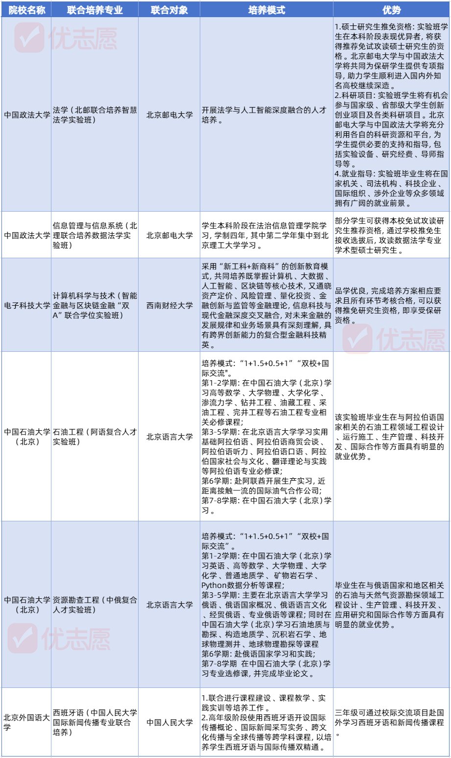 部分院校联合培养专业名单