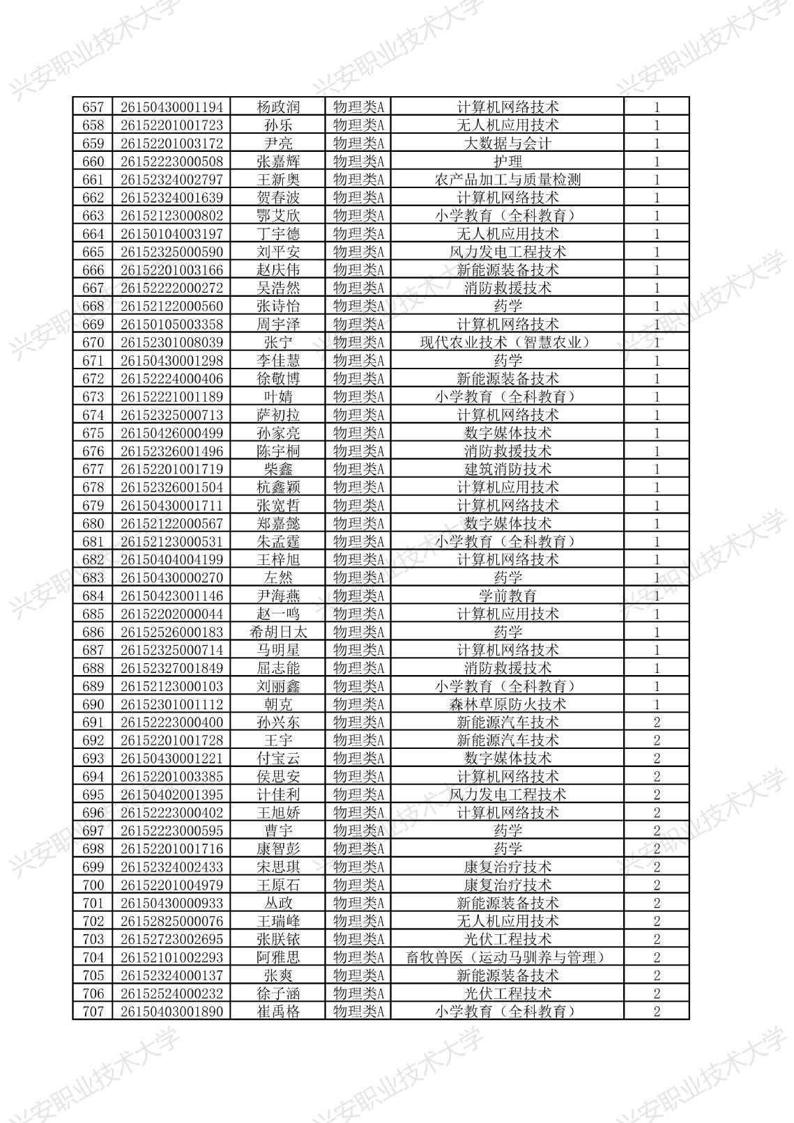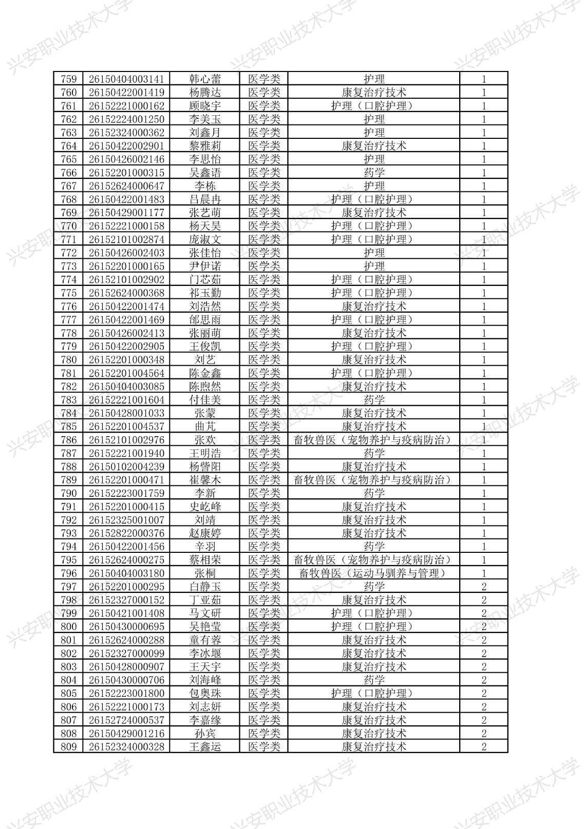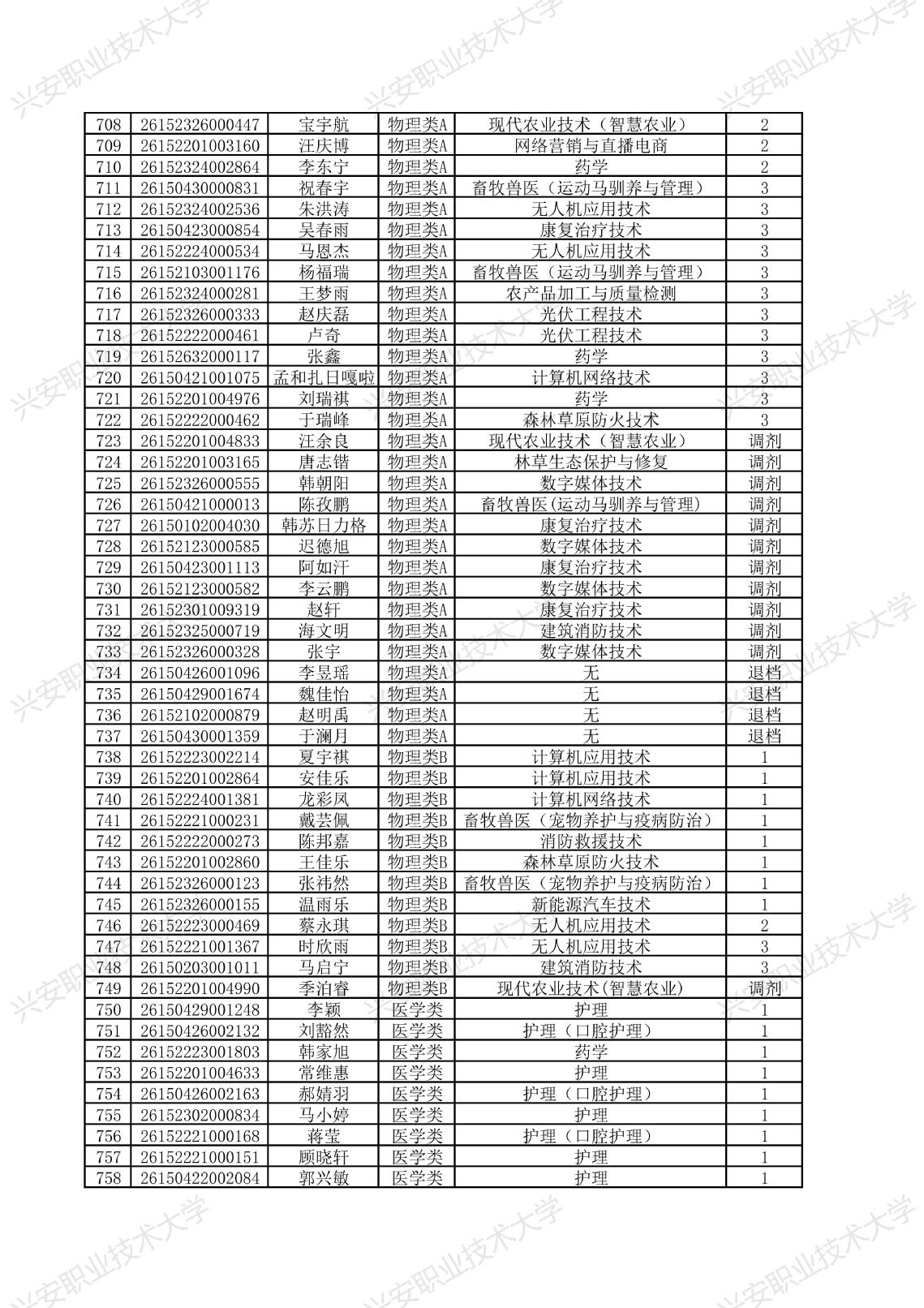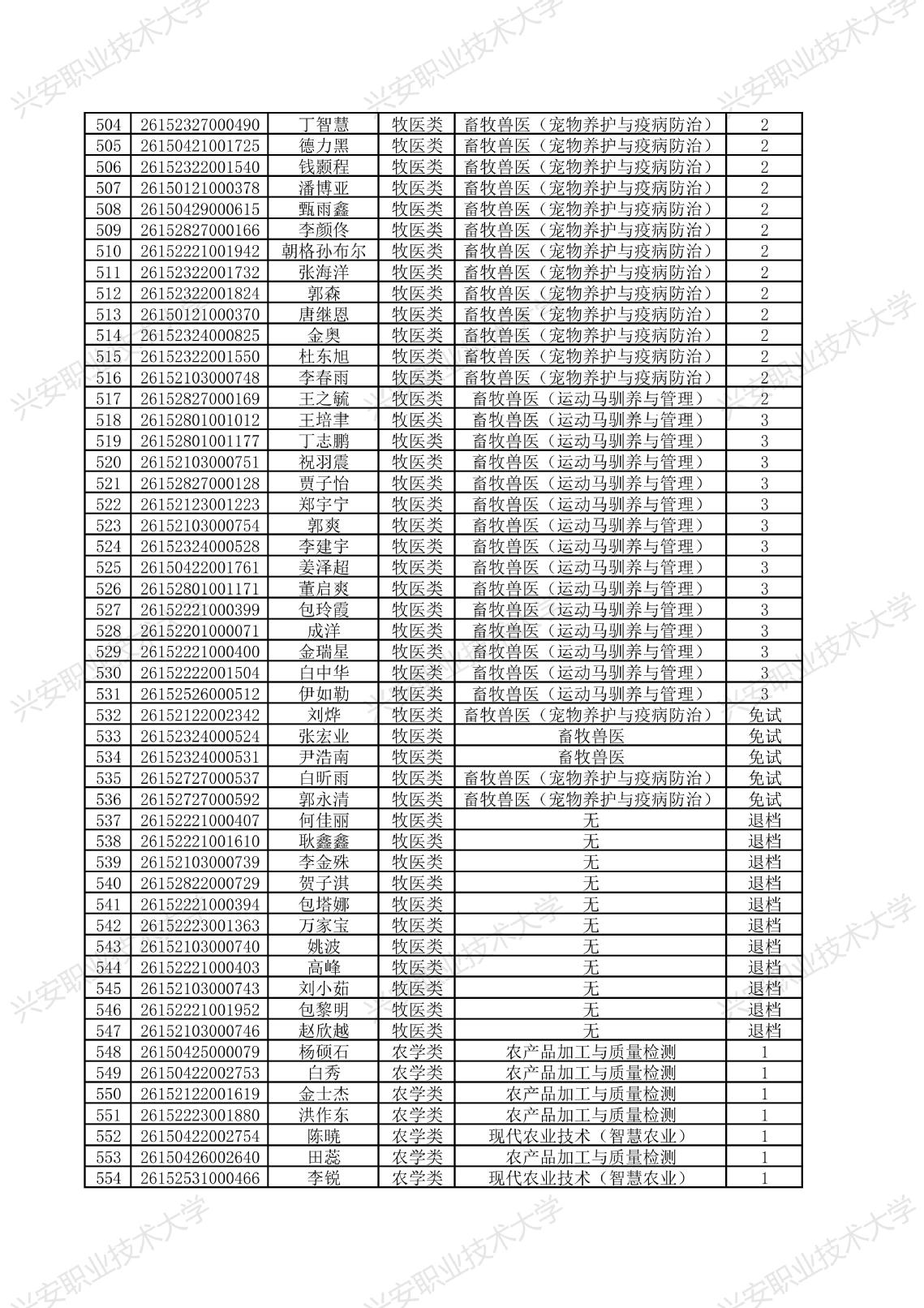 兴安职业技术大学2026年单独考试招生拟录取名单