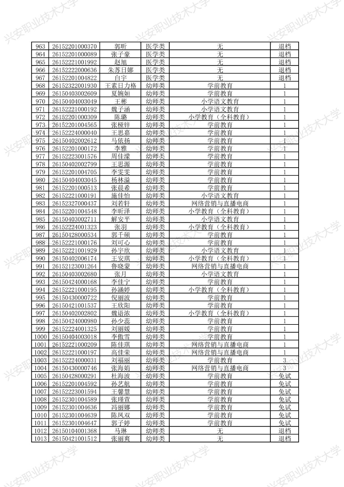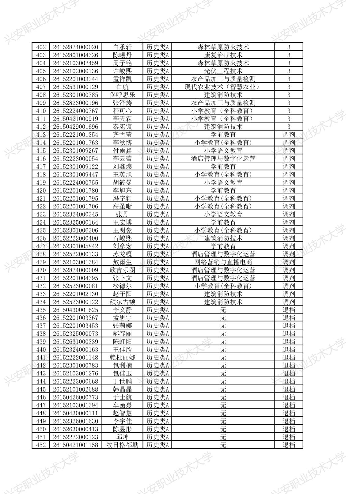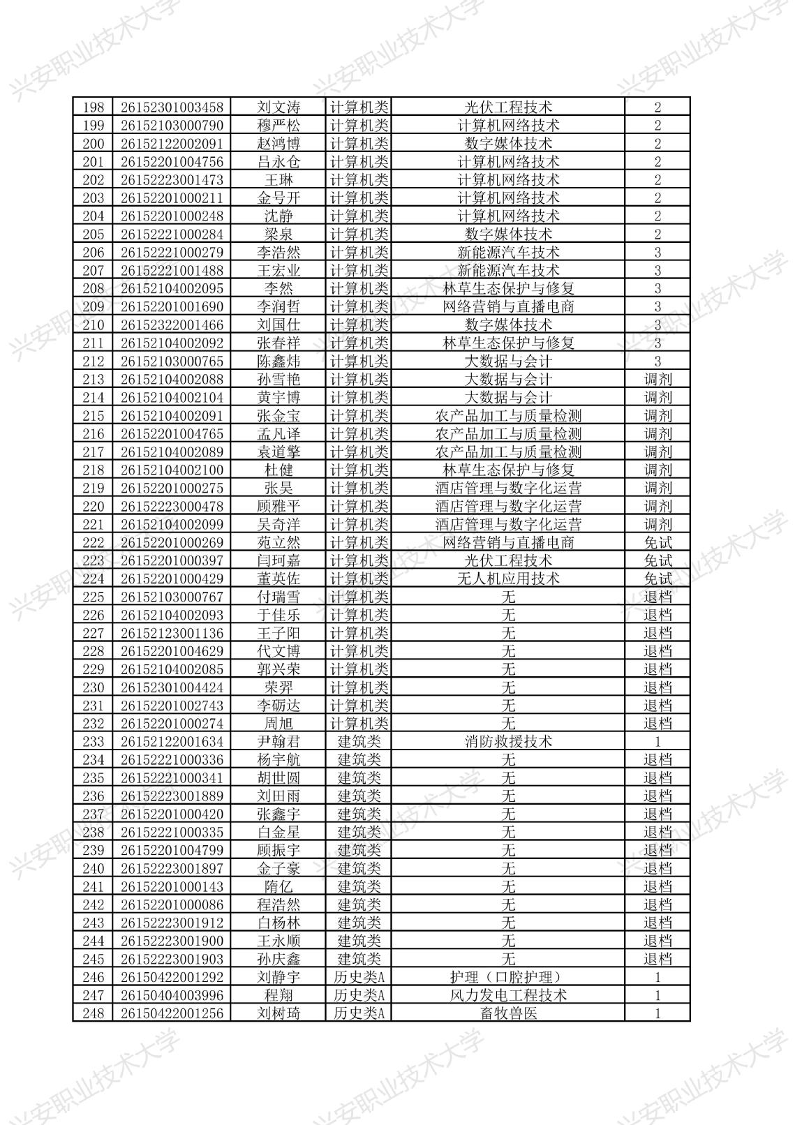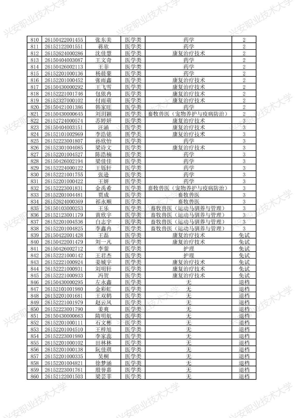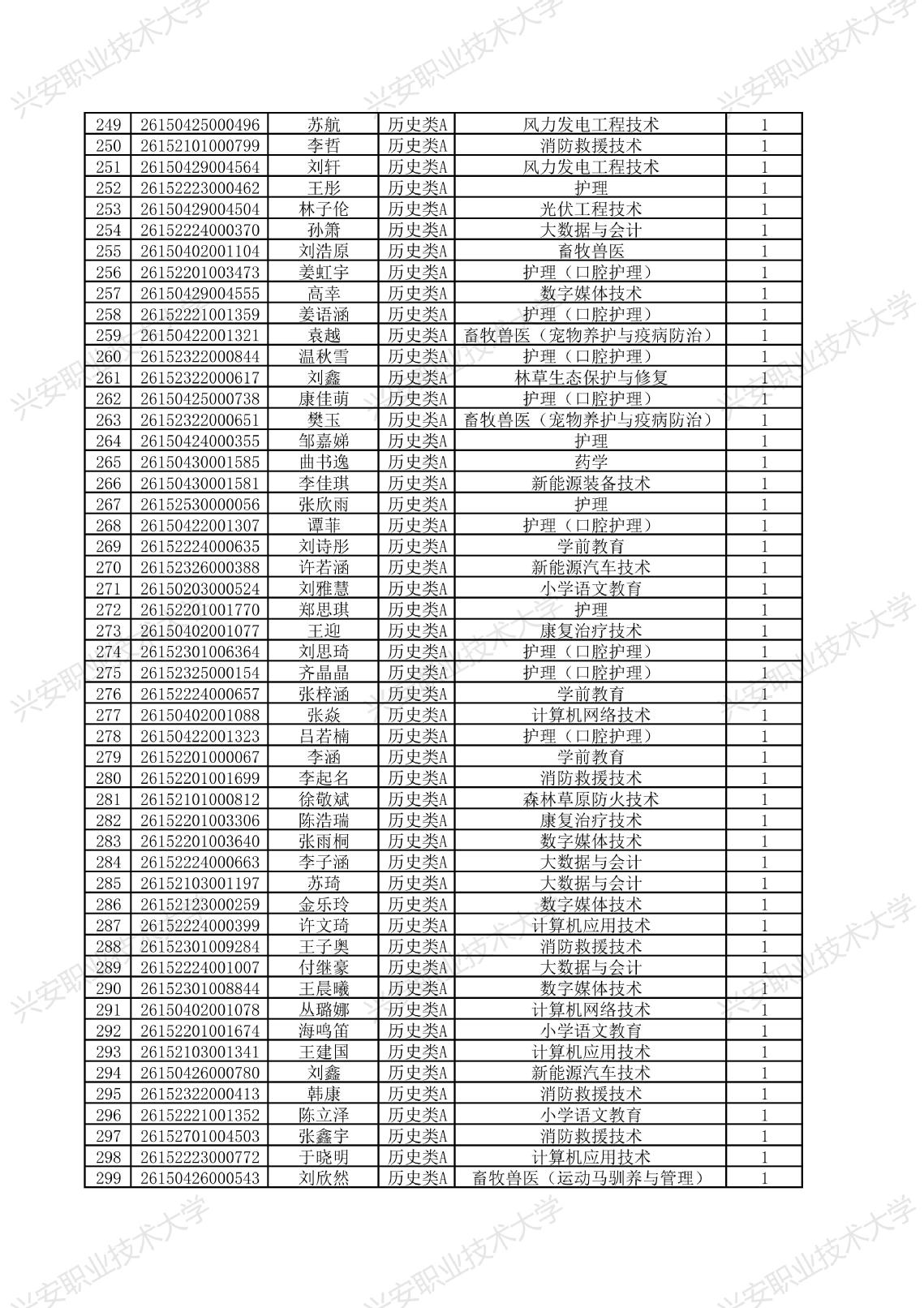 兴安职业技术大学2026年单独考试招生拟录取名单
