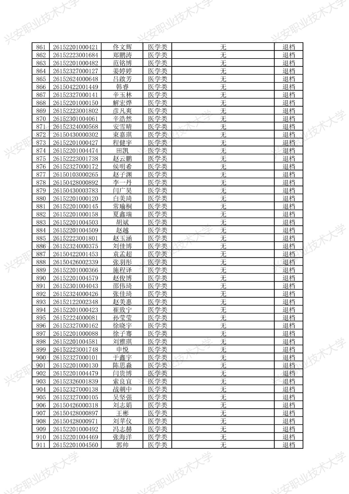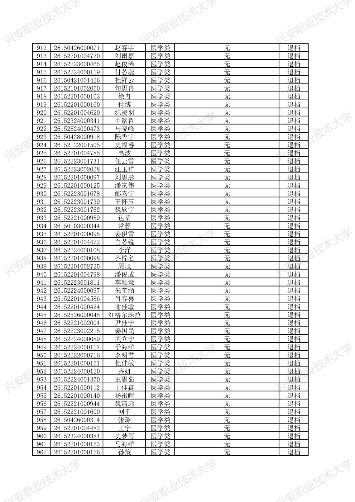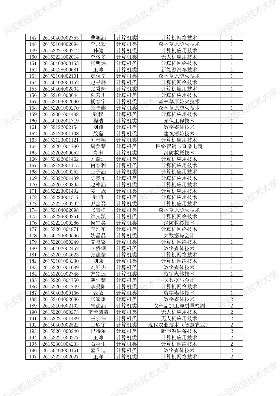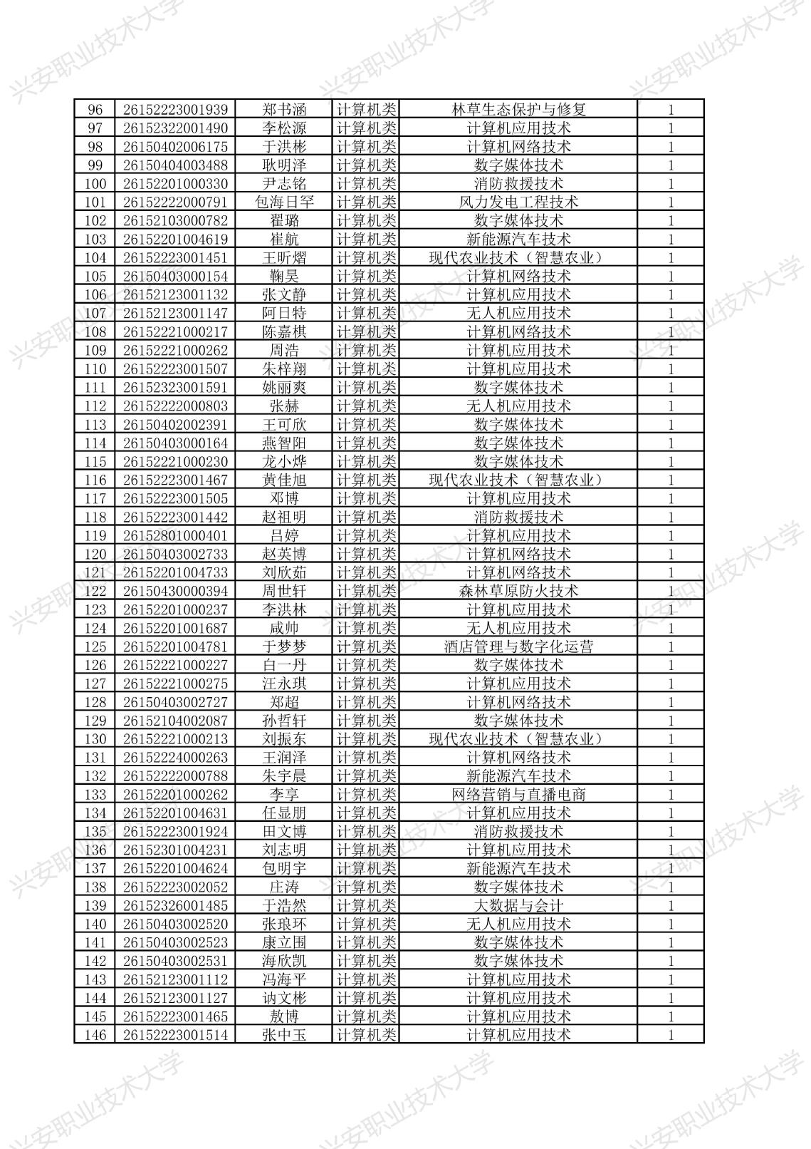兴安职业技术大学2026年单独考试招生拟录取名单