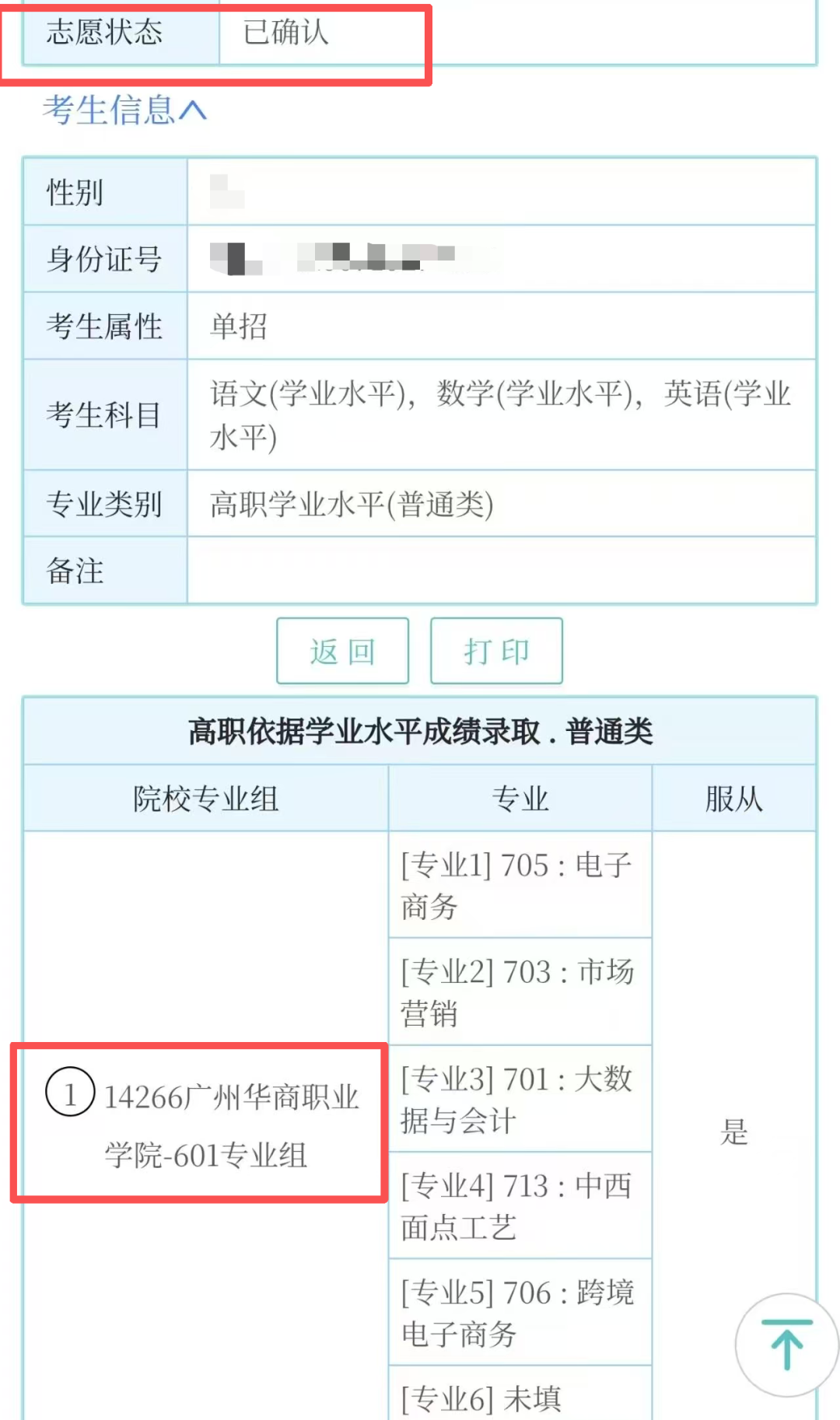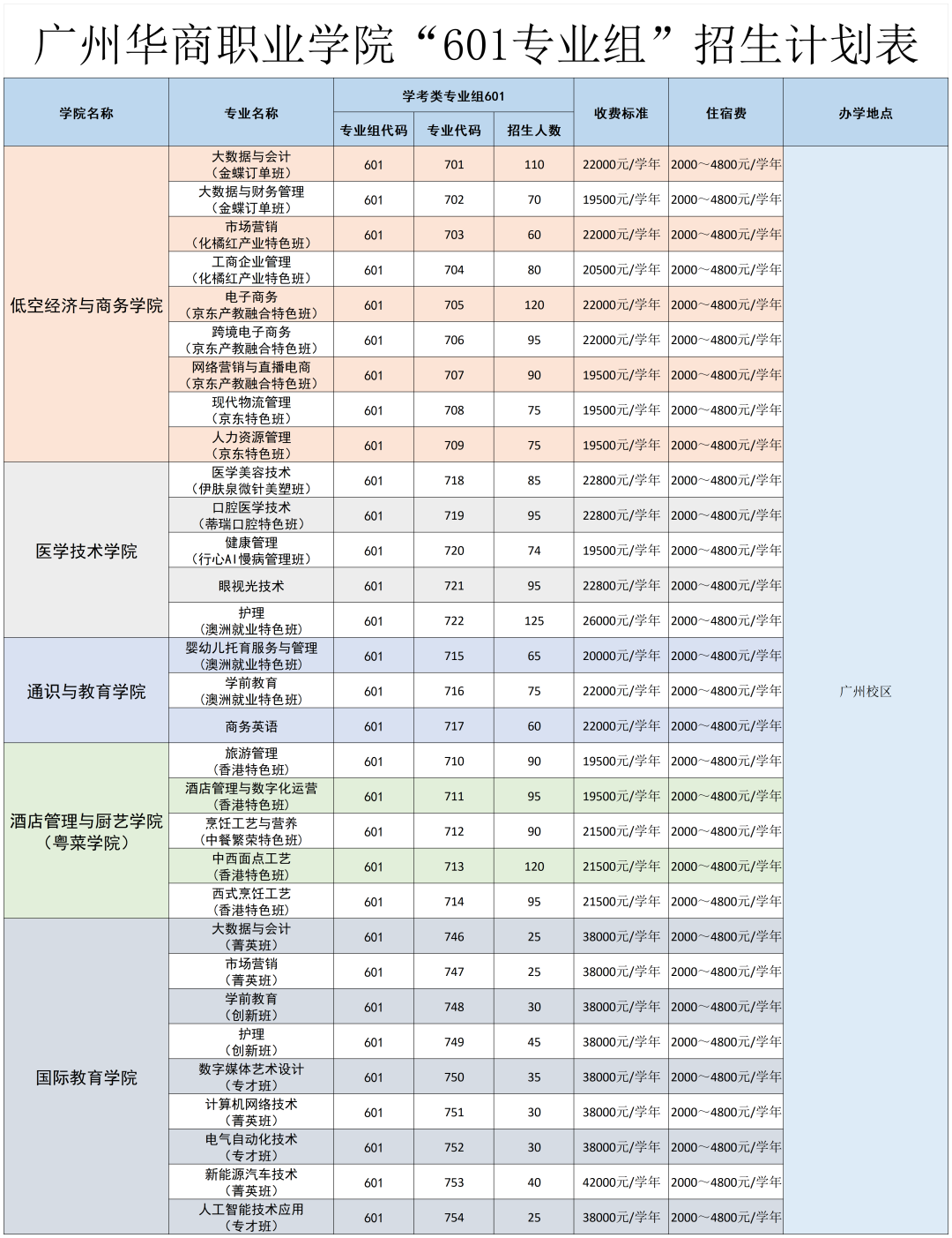第一优先:填报广州华商职业学院(广州校区)专业组601