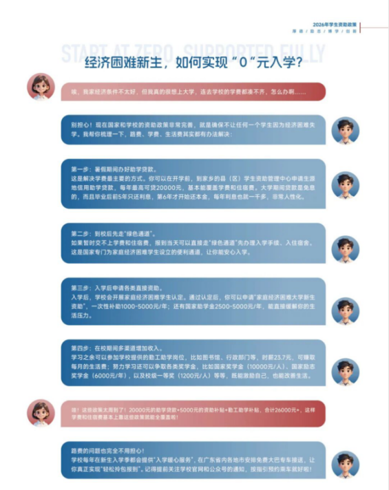广州华商职业学院构建国家 + 校级 + 专项三重资助体系,绝不让任何学子因经济困难失学!符合条件新生,累计可获各类资助 + 勤工助学收入超26000 元,学费 + 基本生活开支全覆盖!