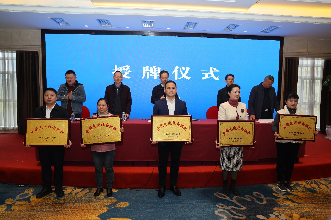 受国家民政部委托,江西省社会组织管理局为我校获得“全国先进社会组织”授牌,党委副书记唐新强代表学校上台接受牌匾。
