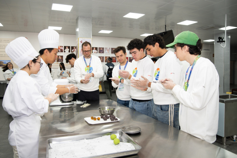 来访师生先后参观了我校理想汽车实训基地、江苏母婴产业学院和百度智能网联创新示范基地等实训场所,近距离观摩新能源汽车技术、电商直播、智能制造等领域的实训教学场景,亲身体验直播带货、5G云代驾、机器狗等专业实训设备,直观感受中国职业教育的育人魅力与“中国智造”的创新力量。在文化体验环节,师生们观摩了我校王晓丽大师的紫砂作品,与烹饪专业学生共同制作常州青团,沉浸式品味“烟火气里的江南味”。