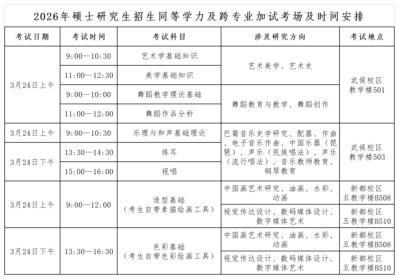 根据《2026年全国硕士研究生招生工作管理规定》以及《四川音乐学院2026年硕士研究生招生章程》的有关要求,现将我校2026年硕士研究生招生考试同等学力及跨专业考生加试有关事项公告如下。