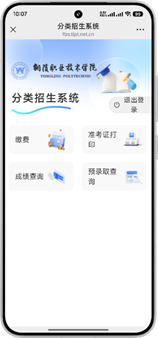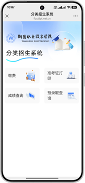 1、在服务号中点击下方的【招生缴费】菜单,跳转至分类招生系统界面。