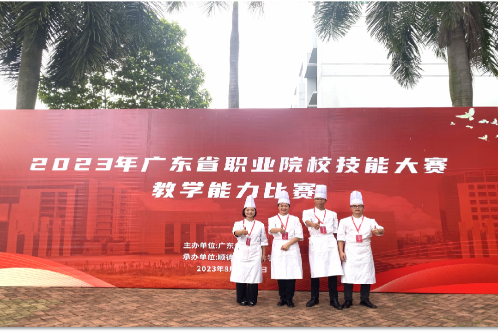专业教师获得省级教学能力比赛一等奖2项、二等奖2项;教师技能比赛:省级以上技能比赛一等奖3项、二等奖2项、三等奖3项;教材:主编教材10本、优秀教材1本;获得全国餐饮职业教育指导委员会教学成果奖三等奖;《粤菜烹调工艺》教材荣获2015年中餐科技进步奖三等奖;郝志阔、叶小文、钟晓霞被聘为广州市职业技能培训质量督导员;叶小文、钟晓霞荣获佛山市技术能手称号;2023年钟晓霞老师荣获广东省青年教师教学能力比赛一等奖;钟晓霞老师、陈明杰同学参加第八届“安琪酵母杯”(2025年)全国发酵面食大赛勇夺金奖(第一名);叶小文老师参加2025年第三届劳动教育说课比赛荣获二等奖。