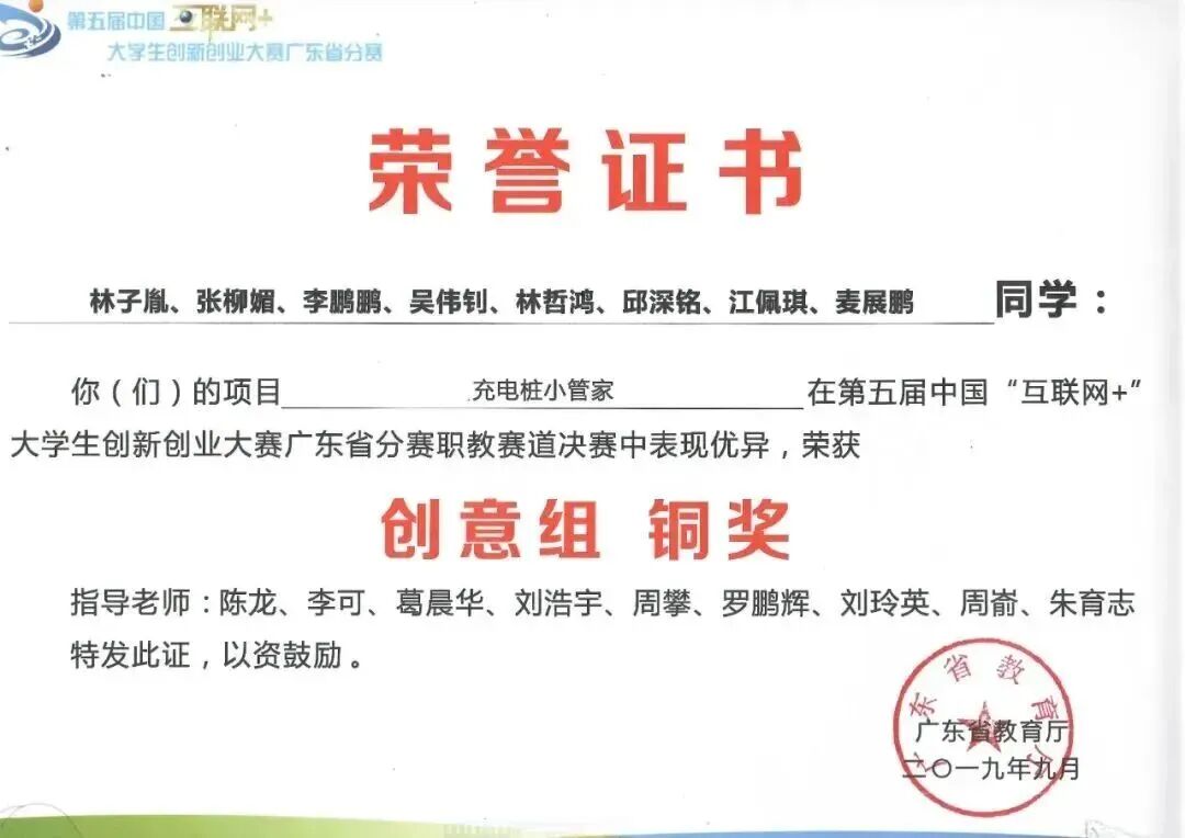 第十九届全国高职院校“发明杯”大学生创新创业大赛获发明制作类获国赛一等奖