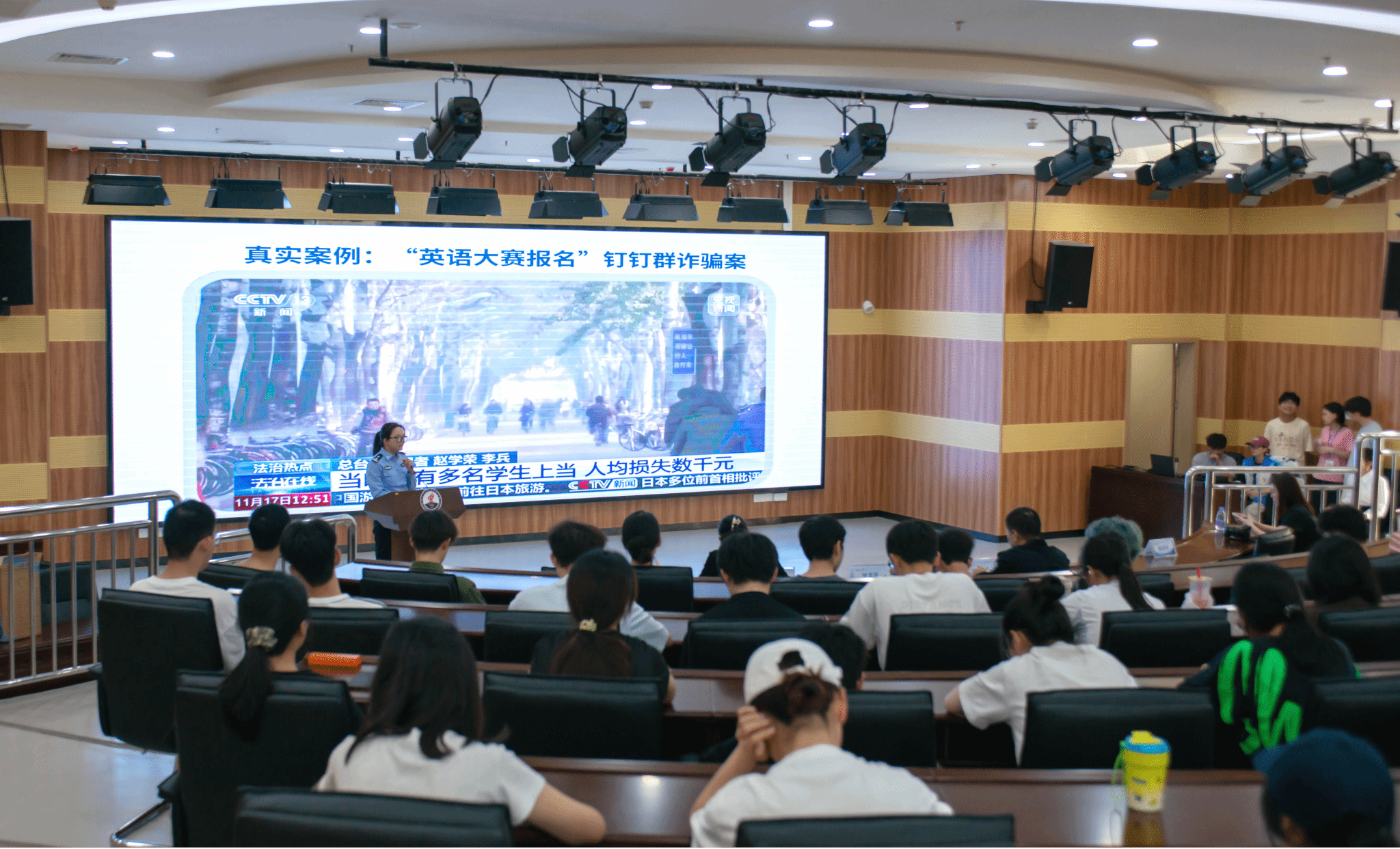 为切实提升学生网络安全意识和反诈防骗能力,3月19日,我校在惟新楼3楼举办网络安全与反诈专题宣讲活动。学校法治副校长、中山市公安局开发区分局副局长罗永伟,学生工作部部长罗美英,各二级学院130余名学生代表等参加此次活动。