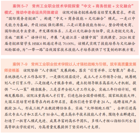 本次入选的《教改赋能,打造高水平中高职贯通培养立交桥》《探索“中文+商务技能+文化融合”模式,推动中老命运共同体建设》《以人才强校战略为引领,筑牢高质量发展师资根基》3个典型案例,集中展示了学校聚焦现代职业教育高质量发展,深耕职业教育教学关键要素改革与创新的典型做法,彰显了我校在现代职业教育体系建设、内涵发展和质量提升等方面的积极作为、创新突破和显著成效。