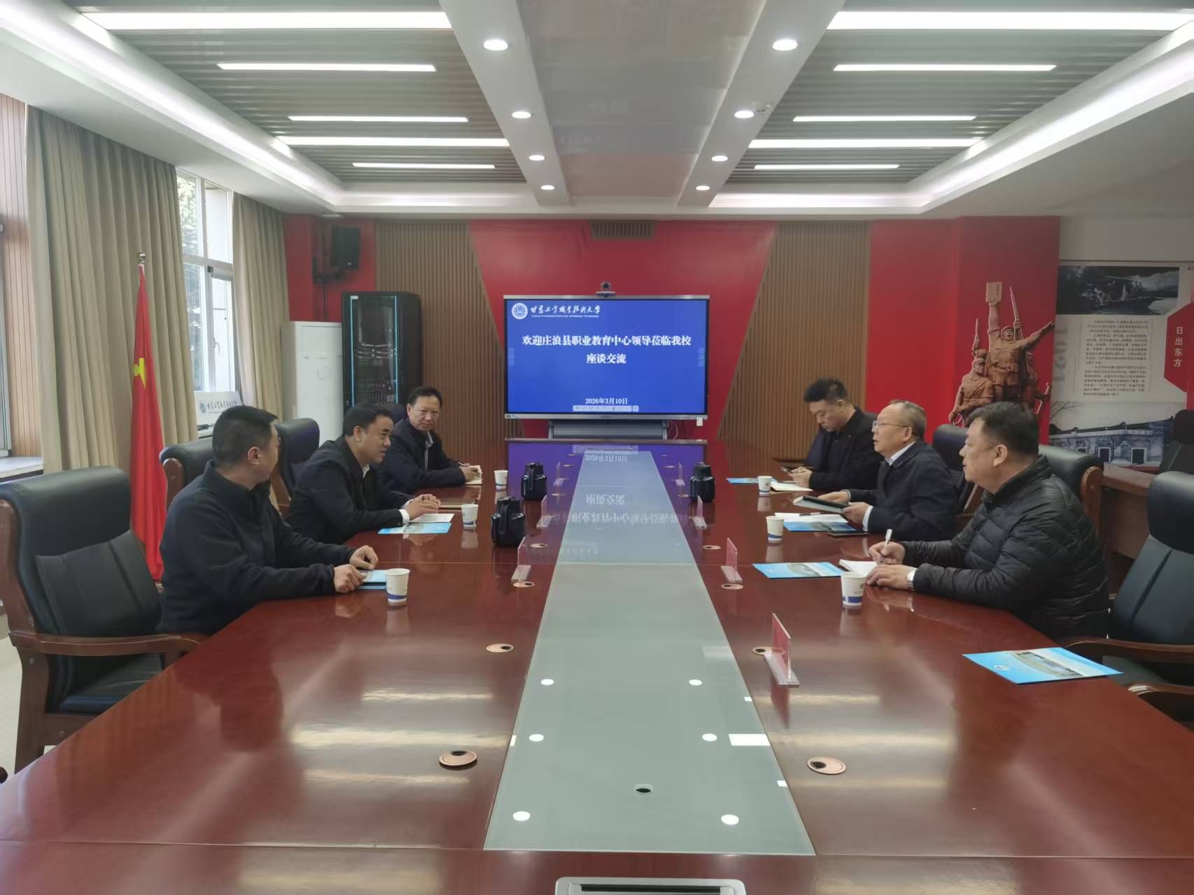 3月10日,庄浪县职业教育中心党委书记王瑾楠一行3人来我校洽谈中高职贯通人才培养事宜。学校副校长毛文辉出席座谈会,招就处负责人参加。