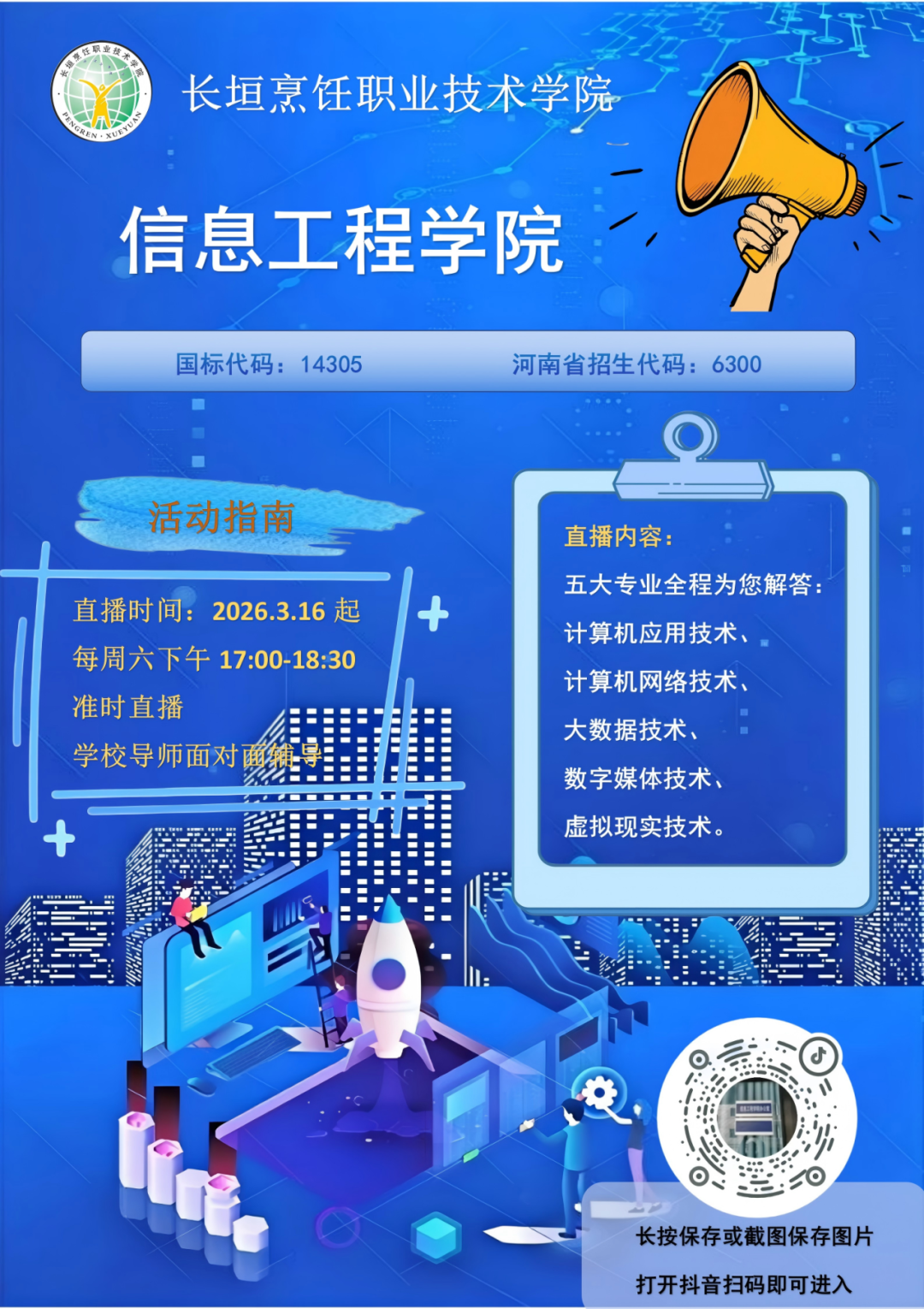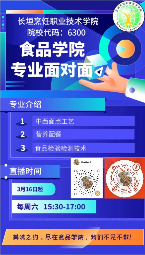 为了给广大考生提供全方位服务,更好地展示我校各学院专业特色、优势和魅力,便于考生志愿填报,为此,我校专门为大家带来全面又精彩的直播活动,带你走进直播间,与心仪的专业面对面。