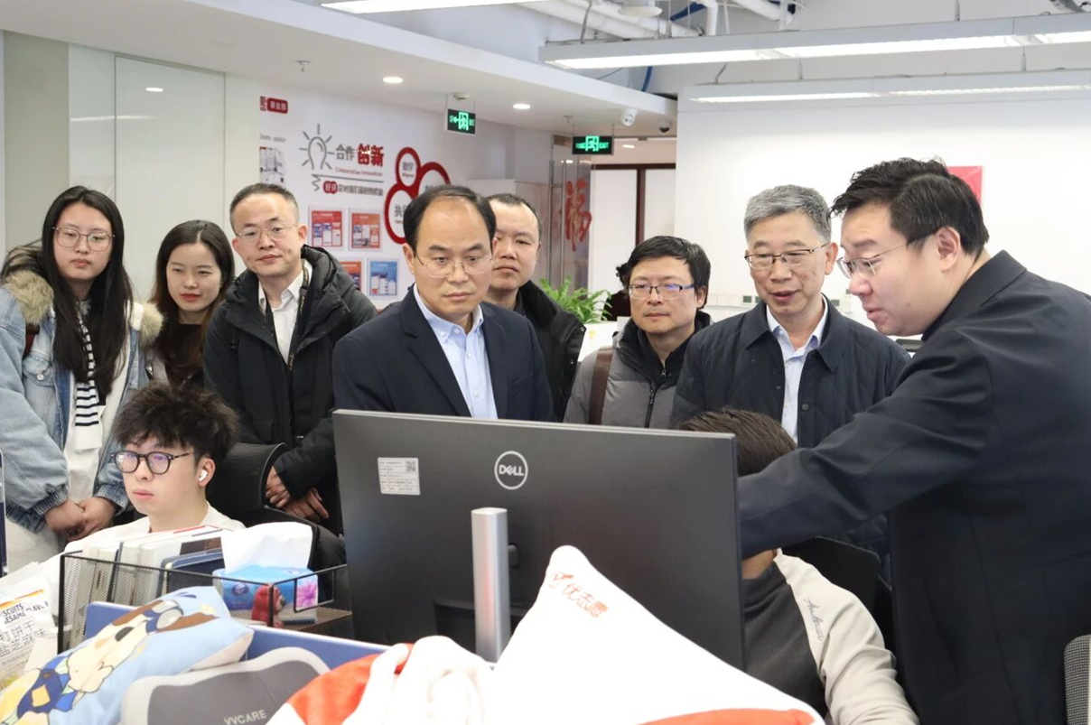 走访期间,舒慧生副校长一行在耿忠诚陪同下,参观了企业办公区域和技术研发中心,了解企业发展历程、核心业务及人才需求。亿阁科技专注于升学规划领域,依托高考升学大数据和人工智能大模型,打造了“优志愿”“高招云”等产品,在大数据处理、人工智能应用等方面经验丰富,与东华大学数学与统计学院的学科优势高度契合。