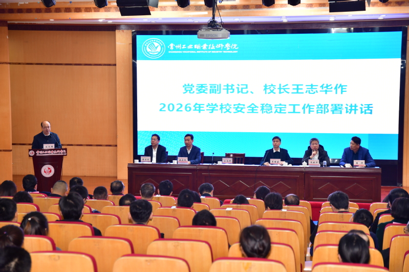 3月25日,我校召开2026年度安全稳定工作会议,系统部署2026年安全稳定工作重点任务。武进公安分局科教城派出所所长张小峰受邀参会,党委副书记、校长王志华出席会议并讲话。党委副书记吴丽云主持会议。