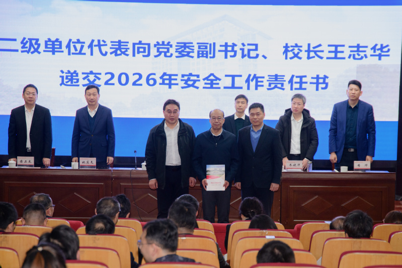职能部门和二级学院负责人代表向王志华递交了2026年度安全工作责任书,进一步明晰了各方主体的安全职责,构建起“横向到边、纵向到底”的责任体系。随后,相关代表进行了表态发言,表明了扎实做好安全工作的决心和态度,也为全体参会人员树立了履职尽责的鲜明导向。