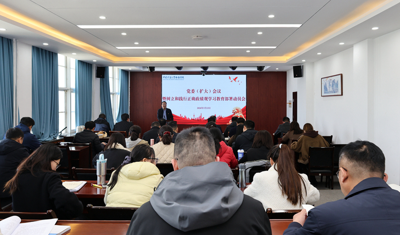 会前,党委研究审议了学院开展树立和践行正确政绩观学习教育实施方案,明确了重点内容,确定了责任单位,确保学习教育有力推进。会上,党委副书记、纪委书记邢雅伟介绍解读了学院开展树立和践行正确政绩观学习教育实施方案。学院为与会人员配发了《习近平关于树立和践行正确政绩观论述摘编》等学习材料。