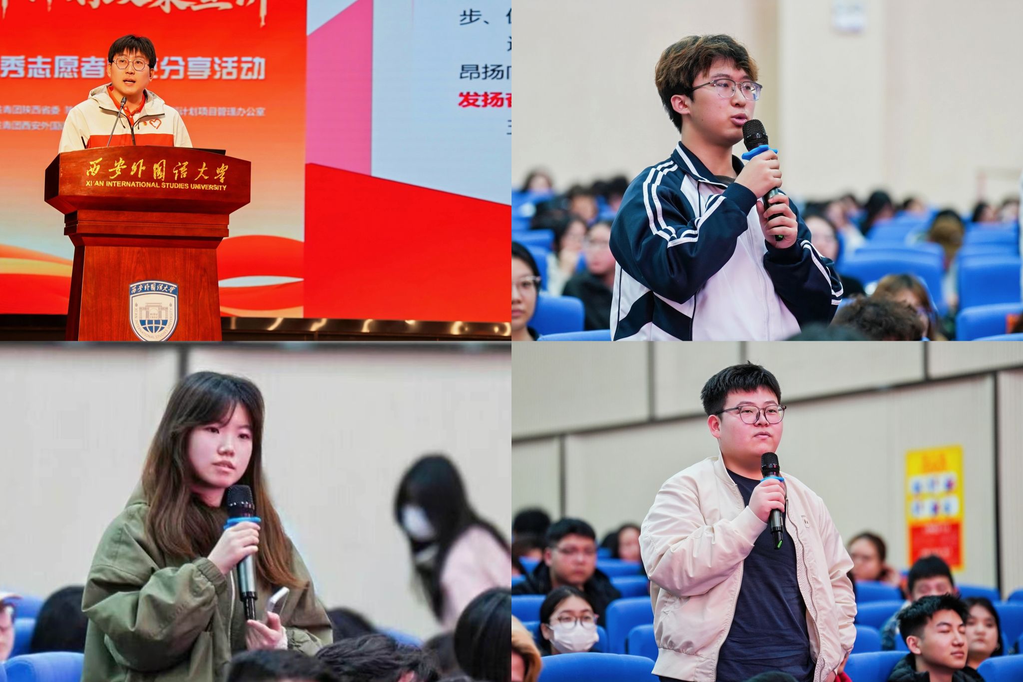 活动现场,全体师生共同观看了陕西省西部计划主题宣传片,身临其境感受西部计划志愿者奔赴基层、扎根西部,用青春汗水浇灌希望之花的动人故事。省西部计划宣讲团成员康佳豪、赵月、秦迪、刘宇洲等4位优秀西部计划志愿者分别结合服务经历及经验感悟,讲述了扎根基层、践行使命的成长故事,用实际行动诠释“奉献、友爱、互助、进步”的志愿精神。