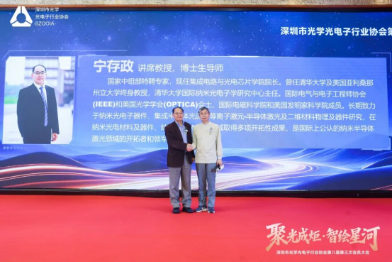 3月27日,深圳市光学光电子行业协会第八届第三次会员大会在南山区举办,来自政府部门及主管单位领导、会员企业代表、行业专家等200多名代表出席大会。经深圳市光学光电子行业协会第八届第四次理(监)事会审议通过,选举深圳技术大学集成电路与光电芯片学院院长宁存政担任2026年度“轮值会长”。