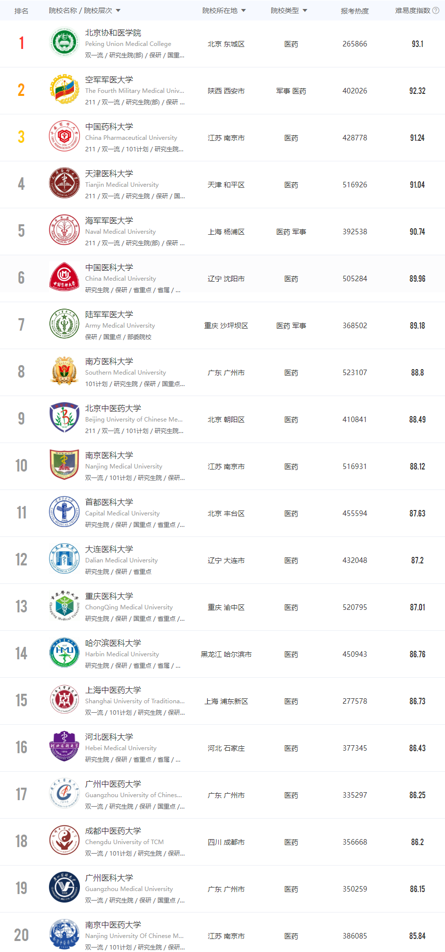 最新医药类大学排名已完成,院校选择不再唯“双一流/985/211”论,附属医院资源、优势学科认可度、地域产业联动性成为更关键的考量指标,给大家推荐以下几个院校特色凸显。