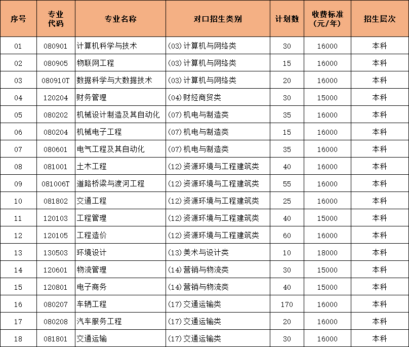 黄河交通学院2026年对口招生计划