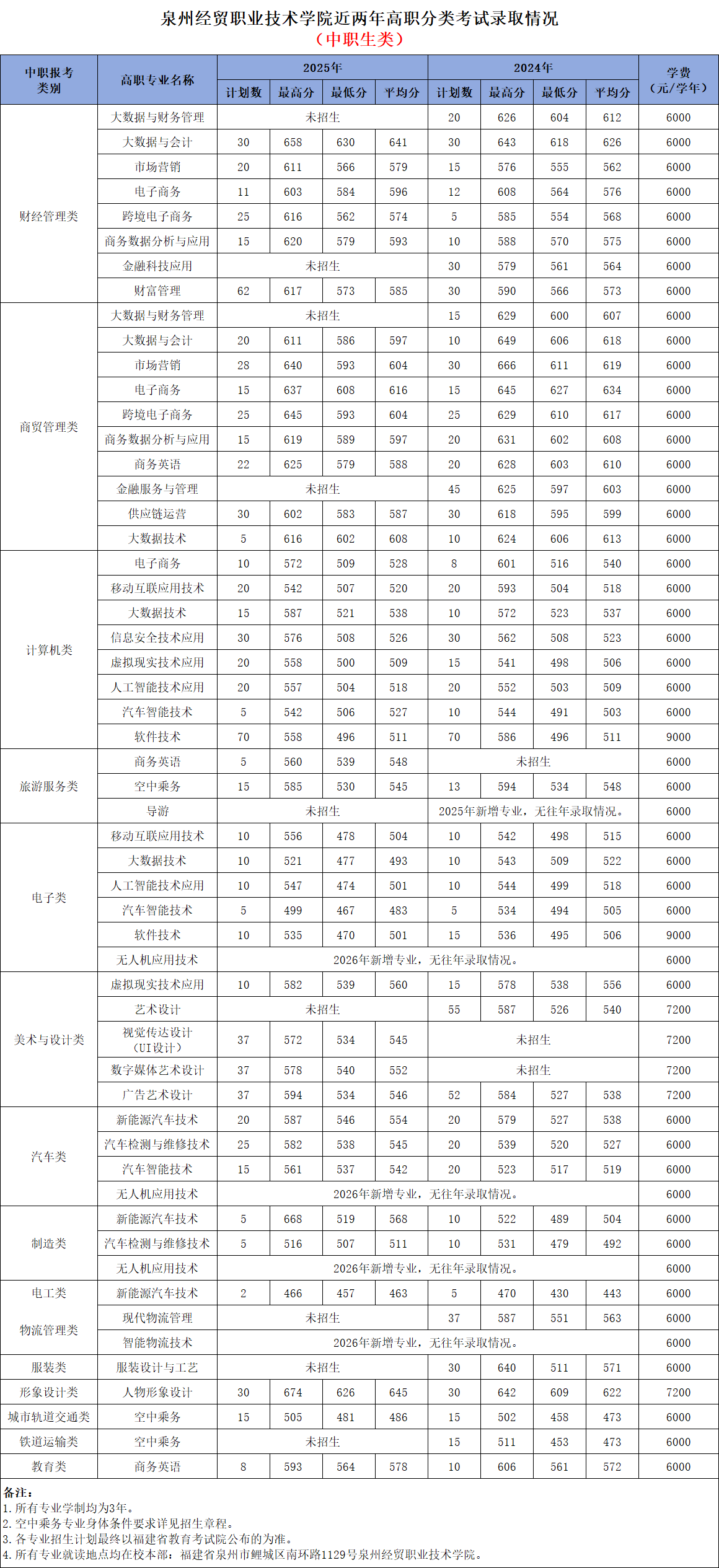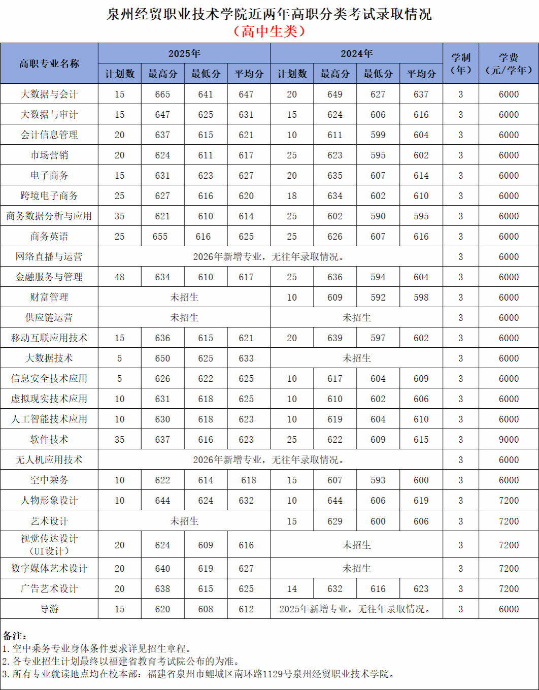 泉州经贸职业技术学院2024-2025年春季高职分类考试录取情况