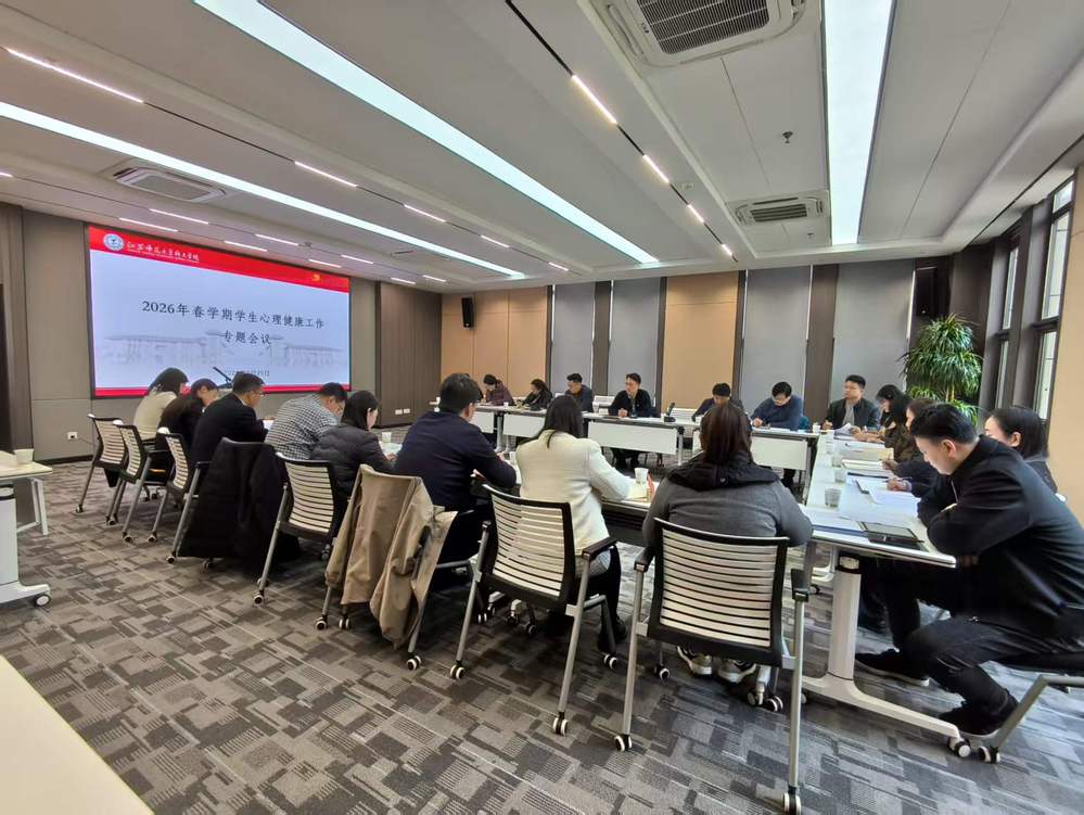 为贯彻落实上级部门关于大学生心理健康教育工作部署,进一步强化校园心理危机预防与干预体系,推进春季学期心理健康教育工作,3月20日下午,学院召开2026年春季学期心理健康工作专题会议。院党委副书记、纪委书记王健出席会议并讲话,各二级学院党总支书记、心理站站长及学生工作部相关人员参会。会议由学生工作部部长戚琦主持。