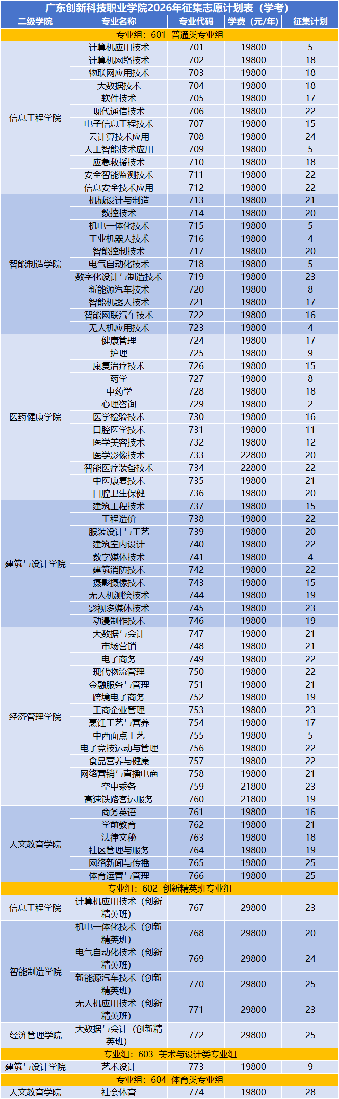 6大二级学院全覆盖:信息工程学院、智能制造学院、建筑与设计学院、医药健康学院、经济管理学院、人文教育学院