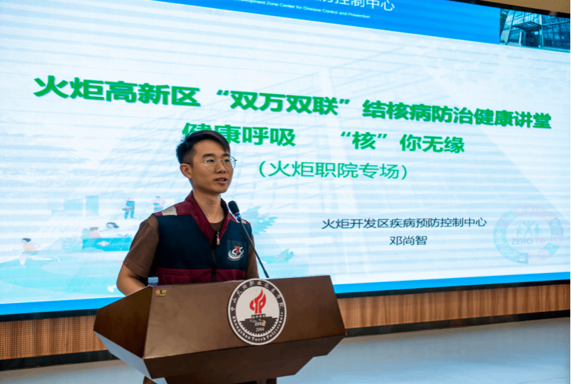 为广泛普及结核病防治知识,增强学生健康防护意识,在第31个“世界防治结核病日”来临之际,近日,我校在惟新楼3楼报告厅举办火炬高新区“双万双联”结核病防治健康讲堂进校园活动。火炬高新区社区卫生服务中心(疾控中心)公卫主管医师邓尚智来校宣讲,我校学生工作部李蠲老师、总务后勤部张燕老师及130名学生代表参加本次活动。