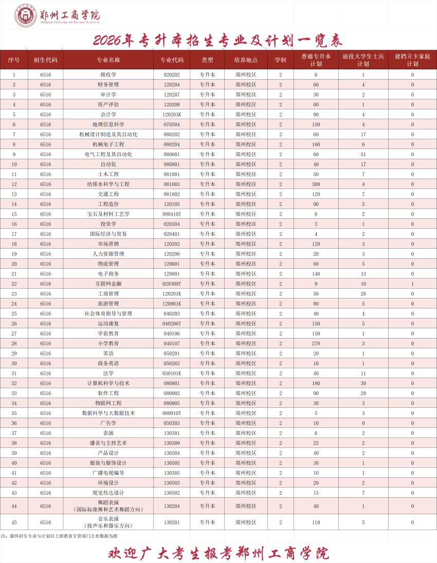 2026年专升本招生专业及计划一览表