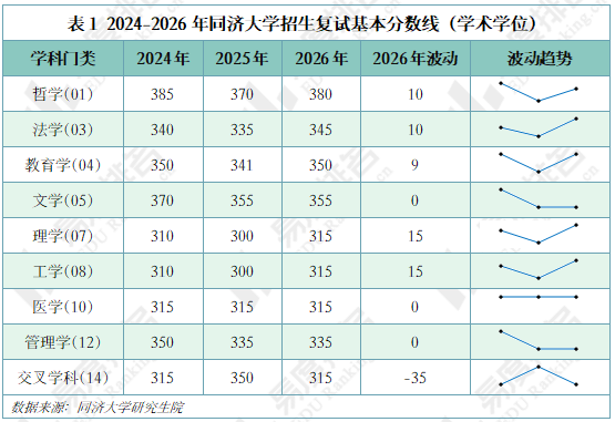 一、学术学位:学科门类复试分数线三年普遍呈V型特征
