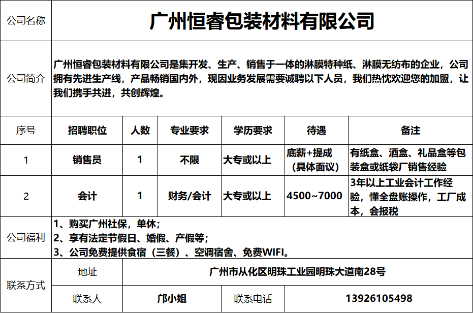 广州恒睿包装材料有限公司
