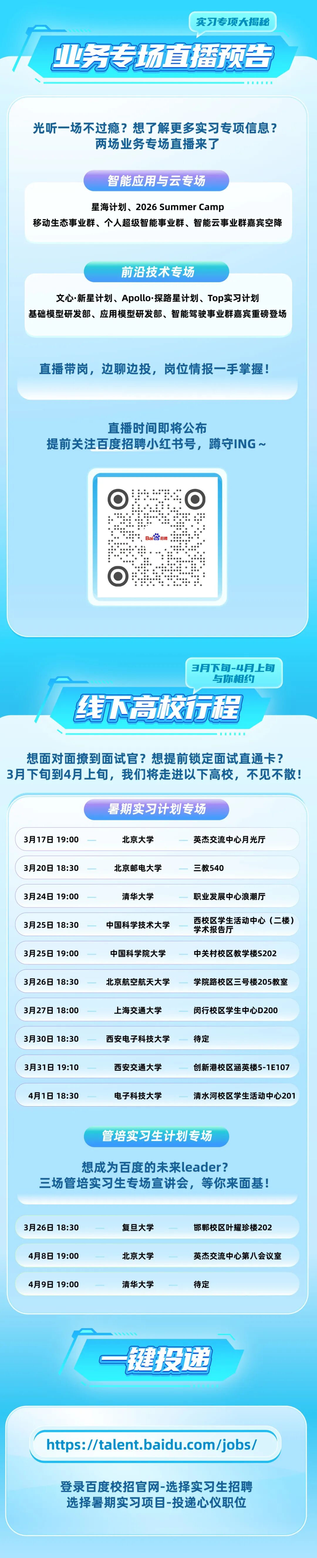 面试直通卡发放中,百度2027届暑期实习宣讲行程发布!