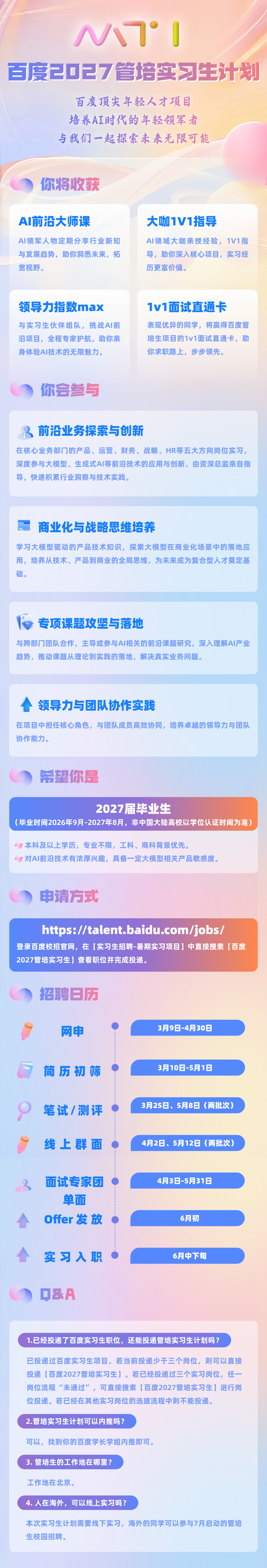 百度2027管培实习生计划正式启动