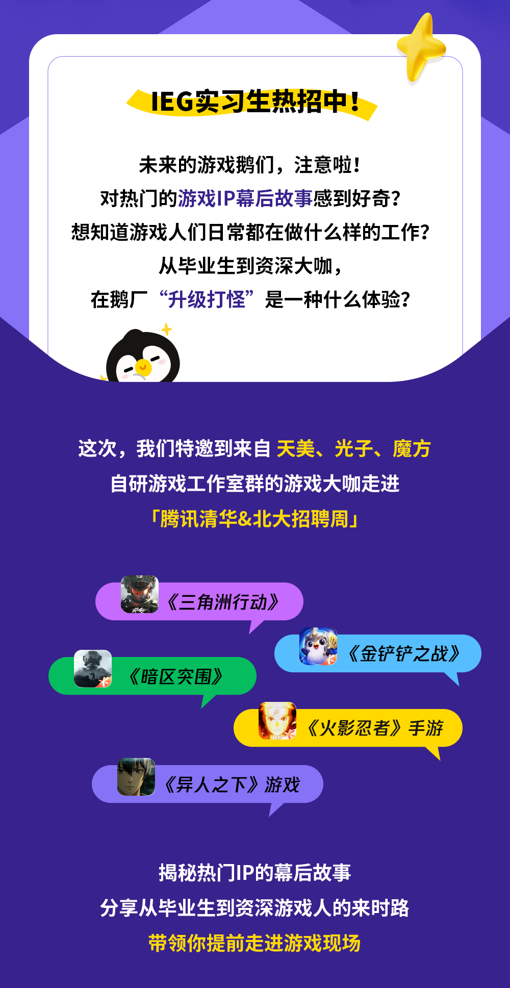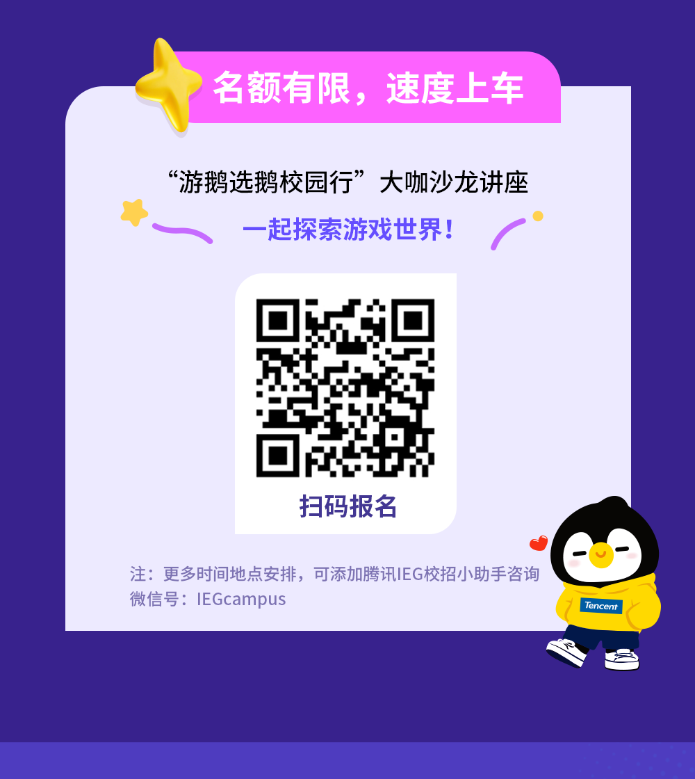 腾讯游戏「游鹅选鹅」大咖校园沙龙讲座报名中!