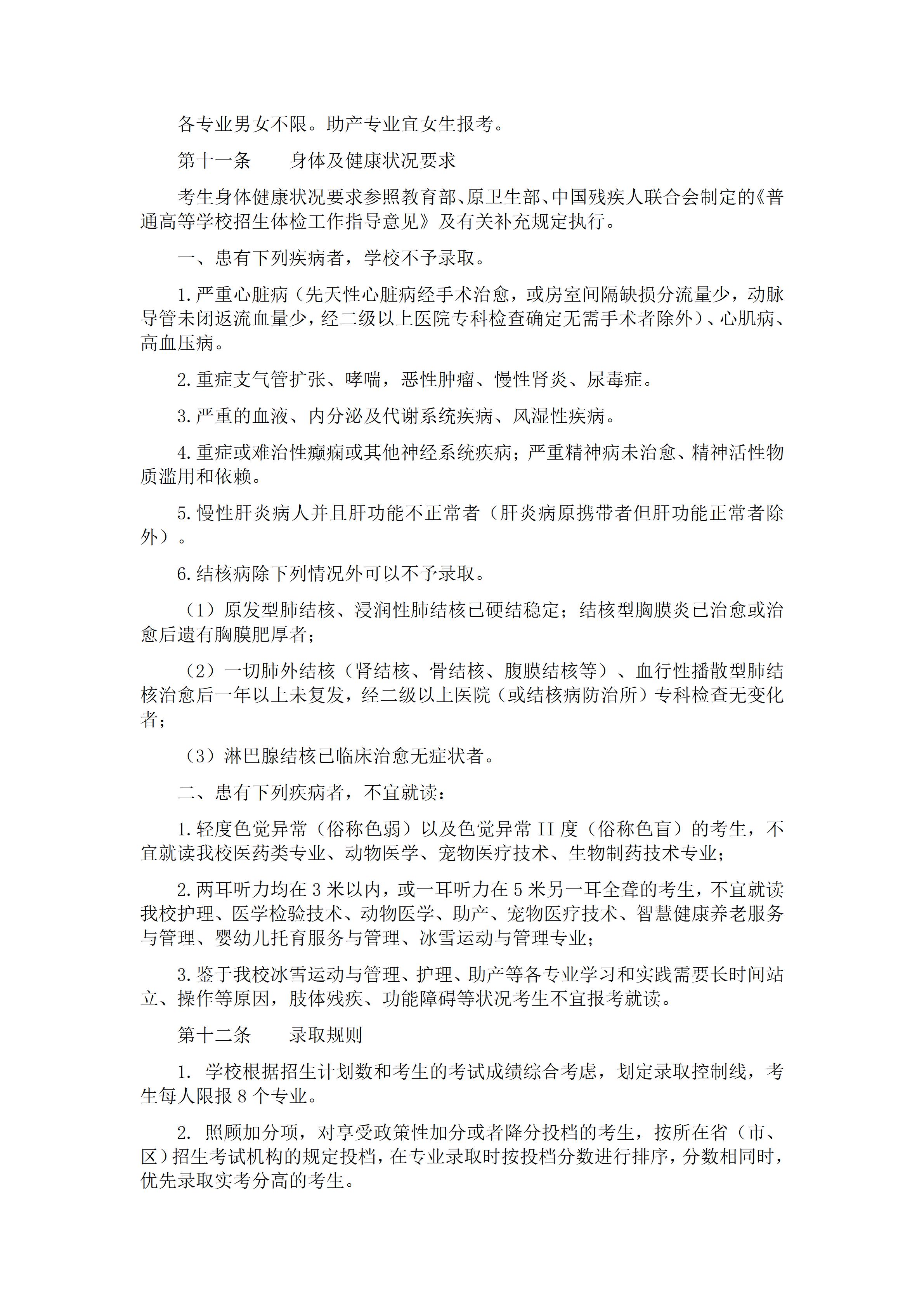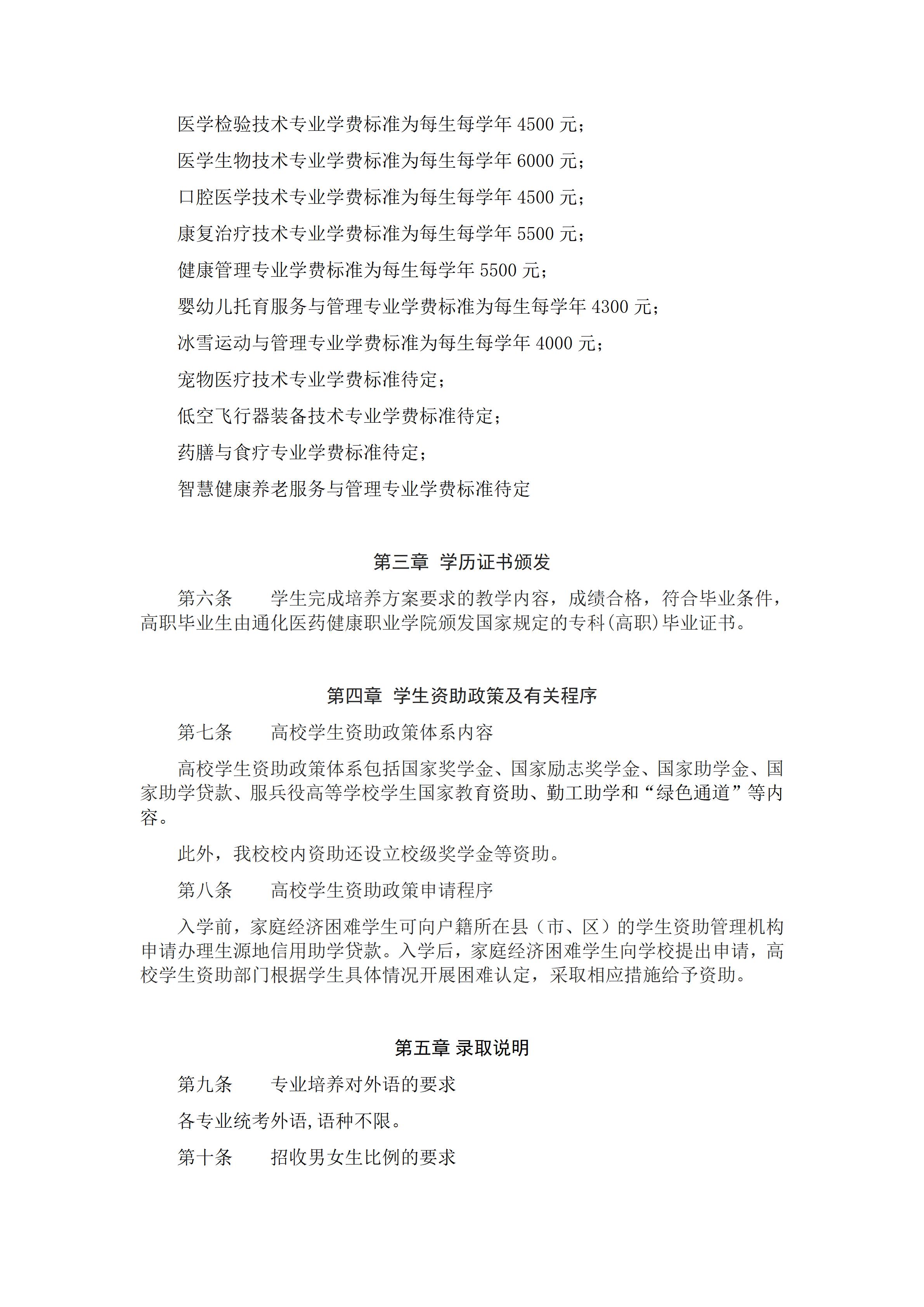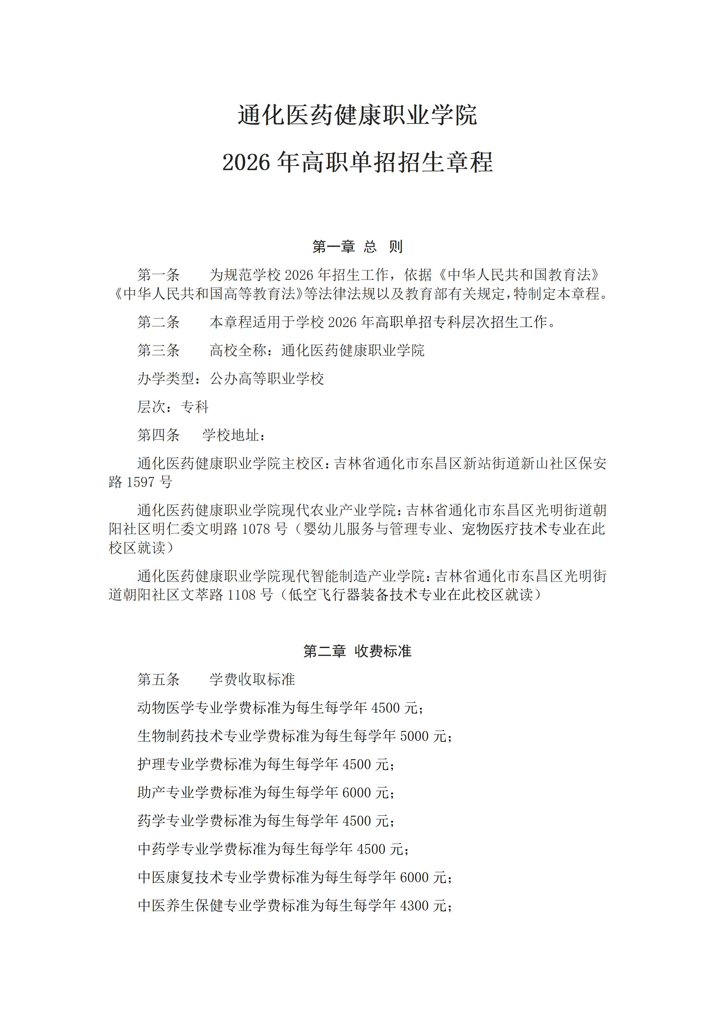 通化医药健康职业学院2026年高职单招招生章程