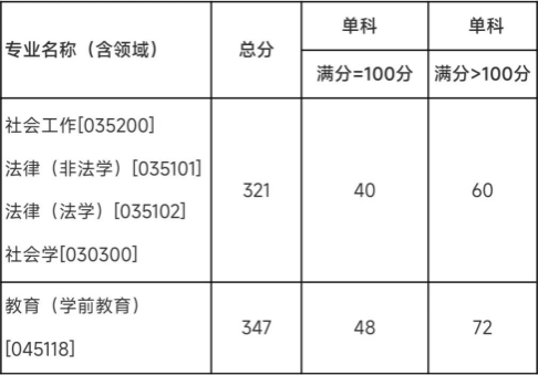第一志愿报考我校的考生,初试成绩须达到的基本要求如下表。学校执行国家的初试加分政策。