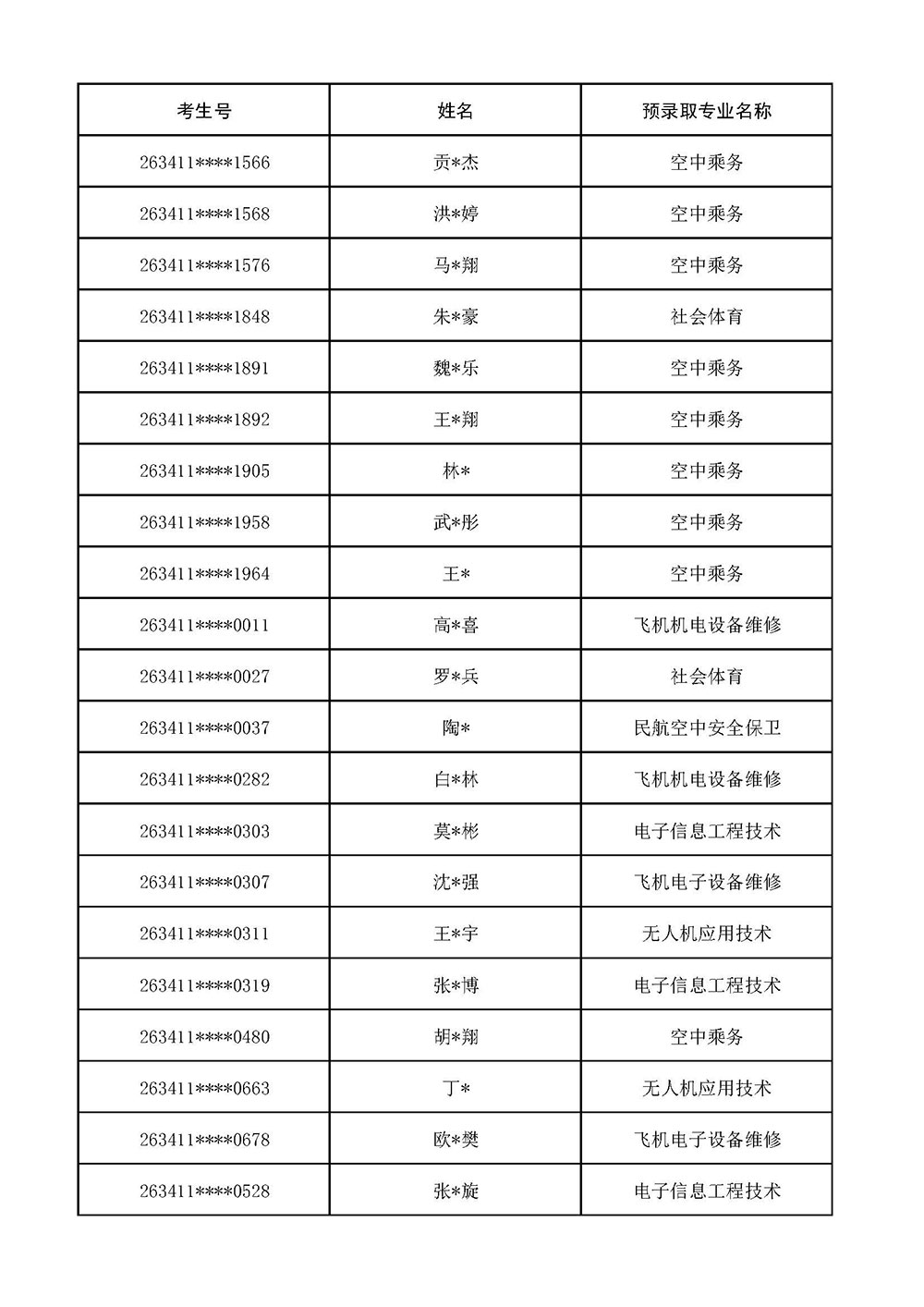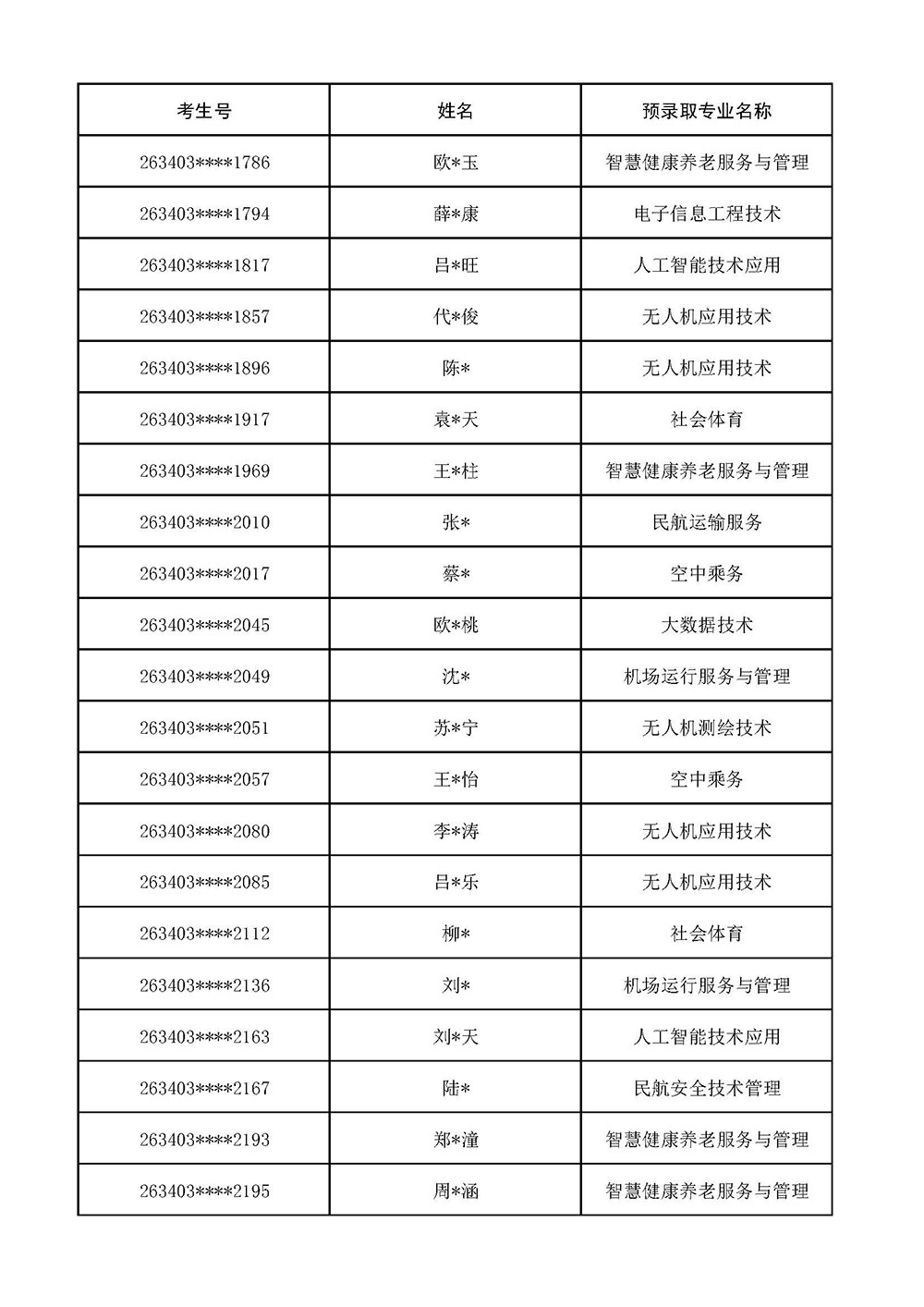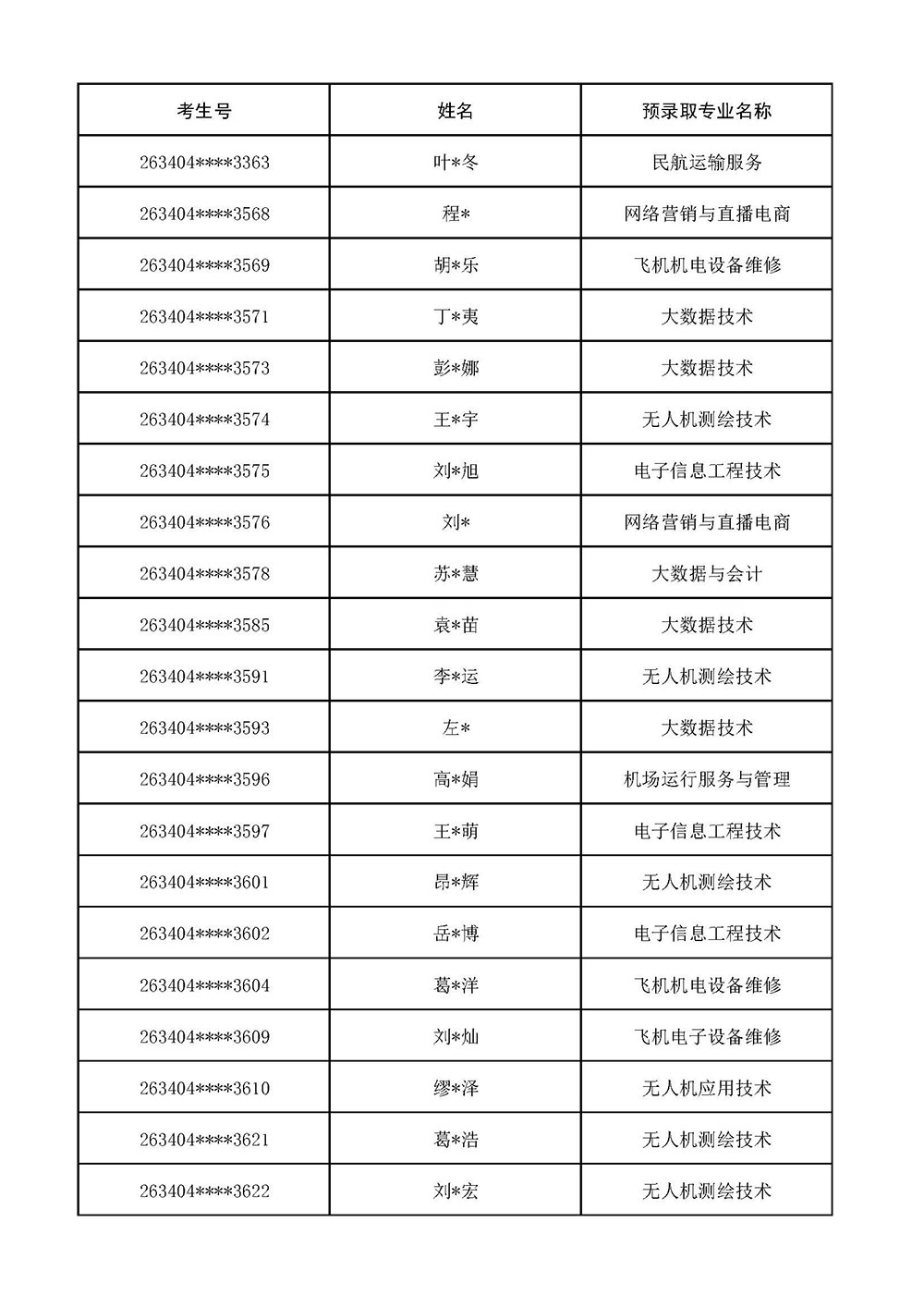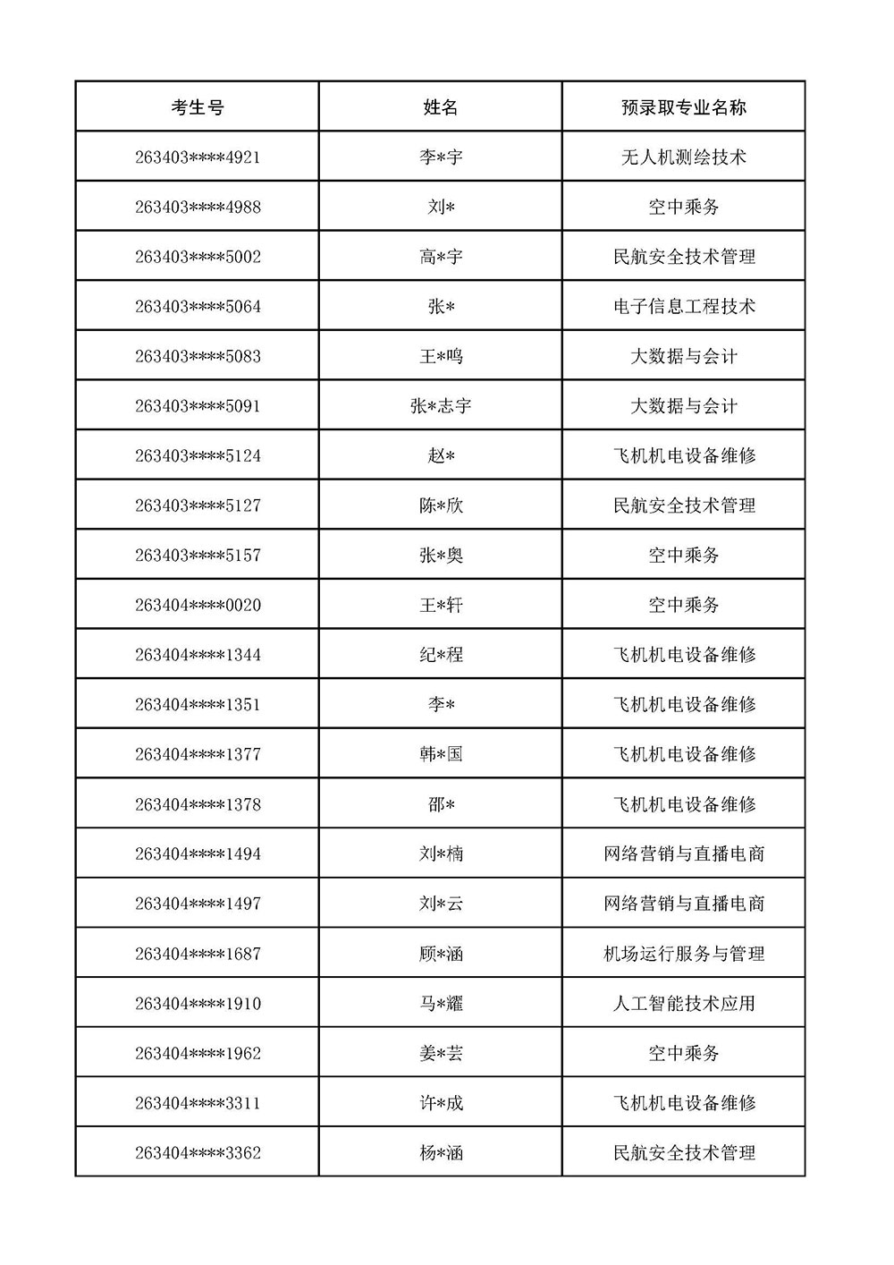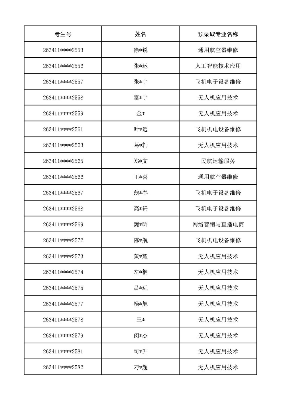 根据《宿州航空职业学院2026年高职院校分类考试招生章程》有关规定,现将预录取名单公示如下,如有异议,请拨打电话0557-2352888,公示时间:2026年4月4日—4月6日。