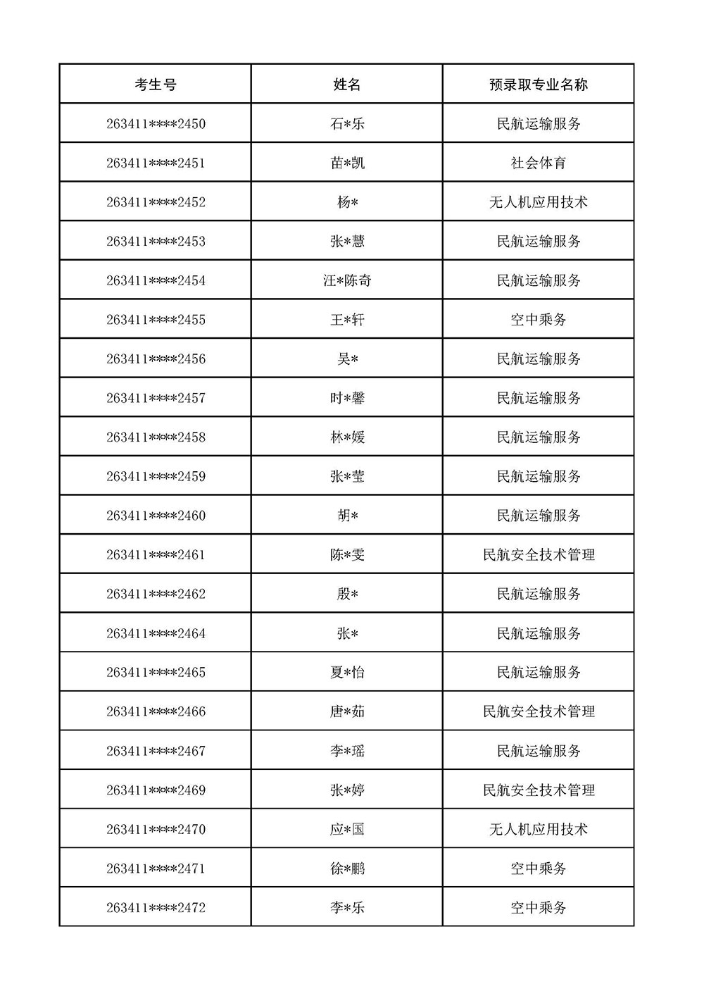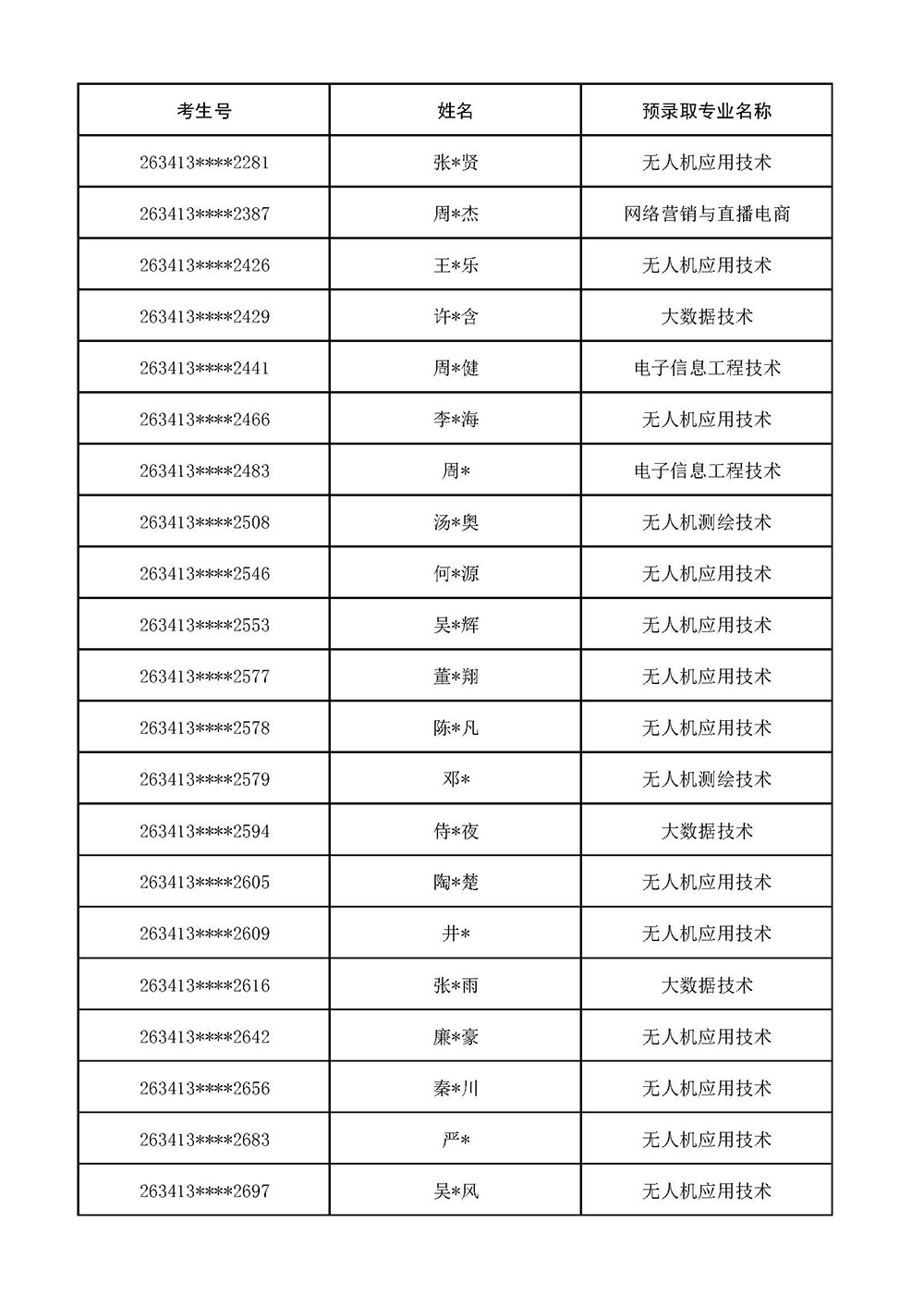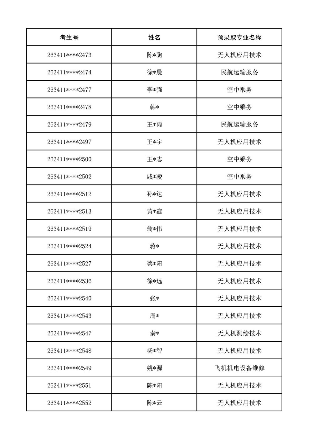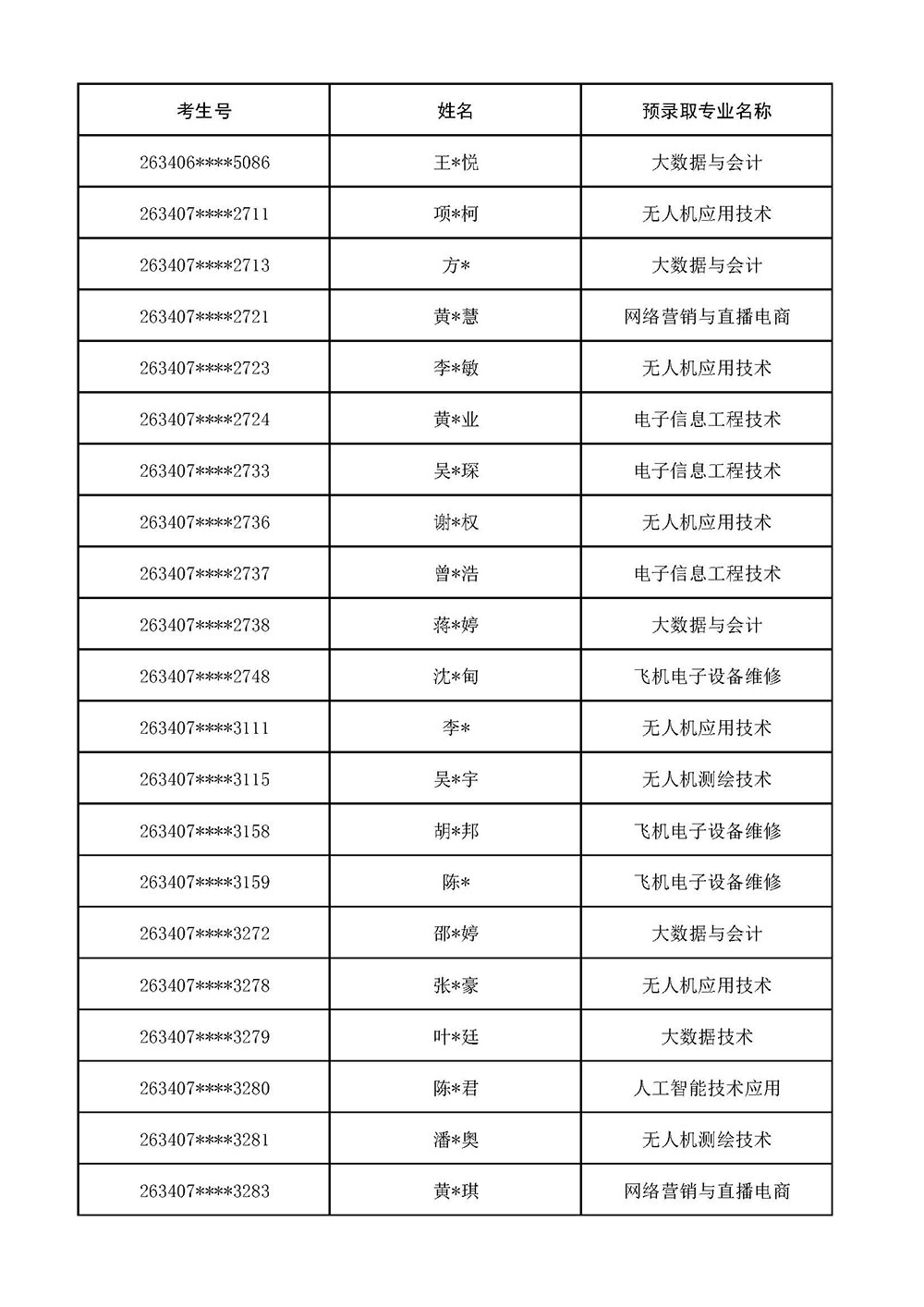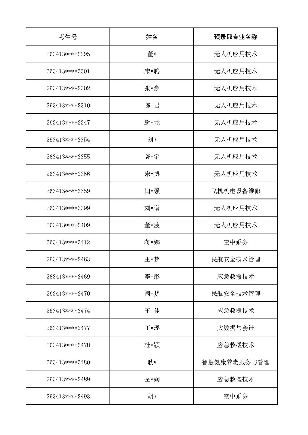 根据《宿州航空职业学院2026年高职院校分类考试招生章程》有关规定,现将预录取名单公示如下,如有异议,请拨打电话0557-2352888,公示时间:2026年4月4日—4月6日。