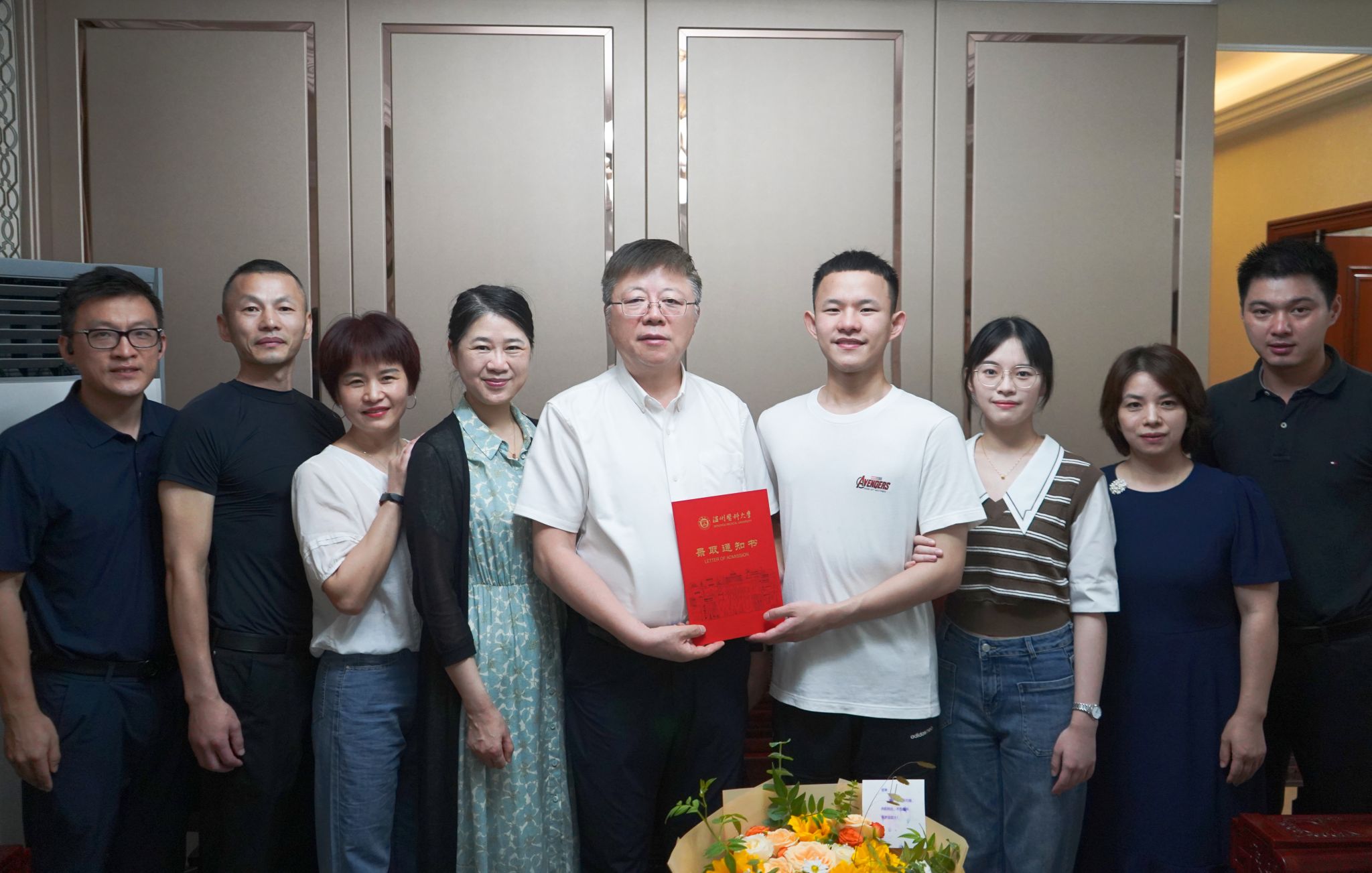“恭喜你被录取啦,你和温医大的故事即将开始!”7月28日,伴随着杭州的大雨,校长李校堃院士化身“邮差”,将本科录取通知书送到2023级眼视光医学(5+3一体化)新生陈熠寒的手中。教务处、眼视光学院(生物医学工程学院)等部门、学院相关负责人一同前往。