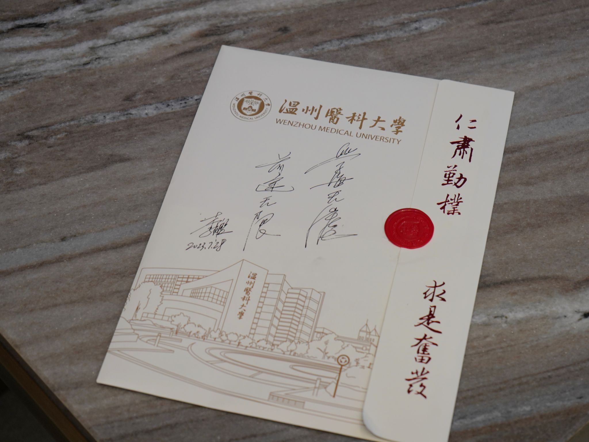 陈熠寒是温医大今年“三位一体”高考录取分数最高的学生,从校长手中接过录取通知书后,他十分激动。陈熠寒说,儿时看到外公因患青光眼饱受困扰,他那时候就开始关注医学,早早规划自己的“医学梦”。在多方了解到温医大的医学底蕴、师资力量后,在报考“三位一体”时他毫不犹豫地将温医大填为自己的第一志愿,并以高考674分的优异成绩考入温医大。“从访客变成温医人,我实现了医学梦。”他笑着说。