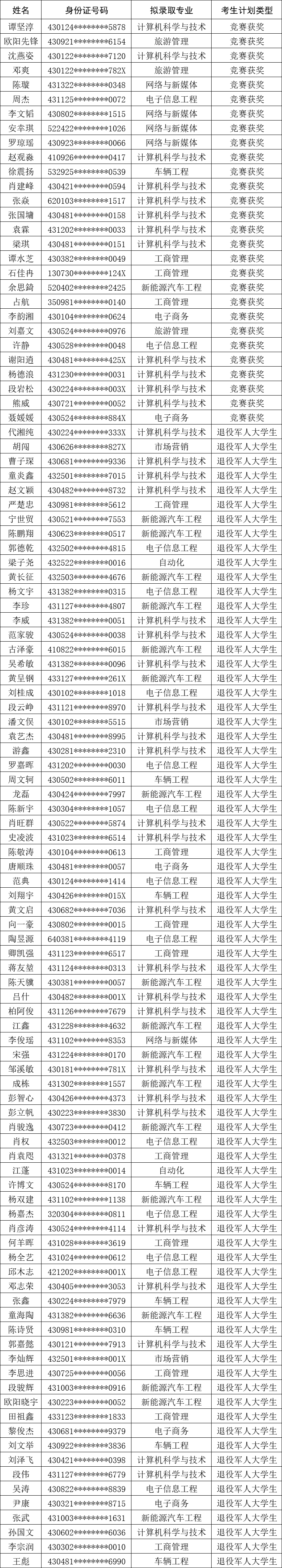 湘潭理工学院2026年专升本征集志愿(一志愿)免试生拟录取名单公示