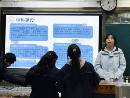 寒假里,我以学校宣传大使的身份回到高中母校,开展湖北中医药大学招生宣讲与中医药文化推广活动。活动现场,我借助精心准备的PPT,向学弟学妹们介绍学校概况:从的雄厚师资,到聚焦老年健康、中药资源研究的湖北时珍实验室......这一系列硬核科研平台与丰硕成果让大家眼前一亮。