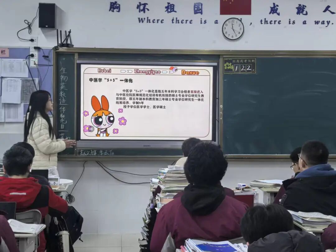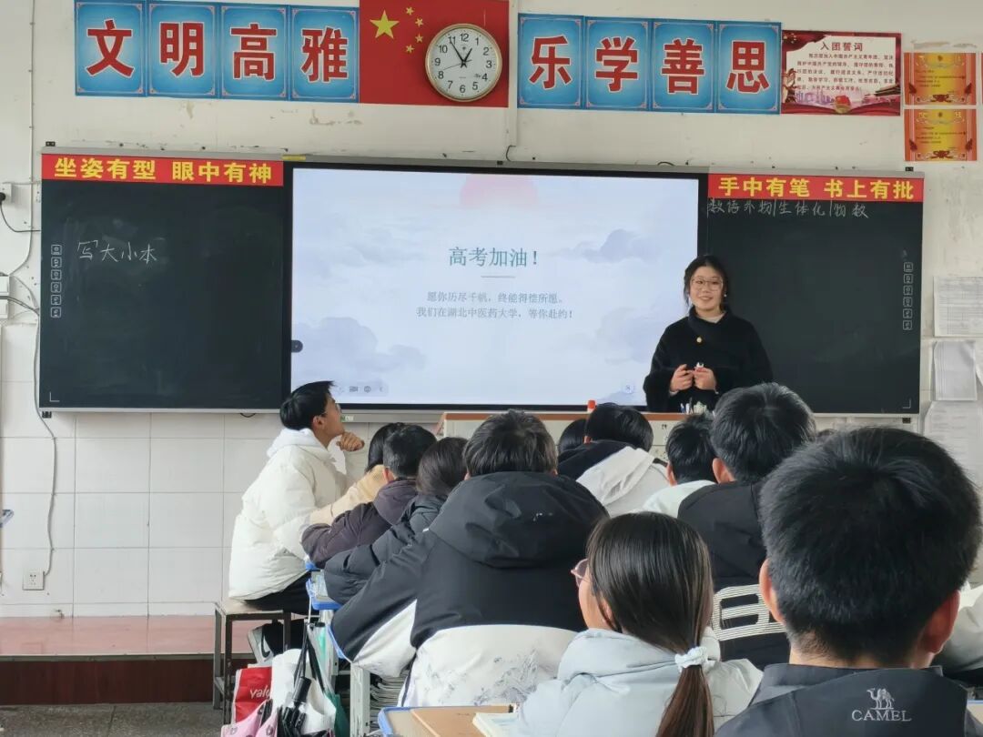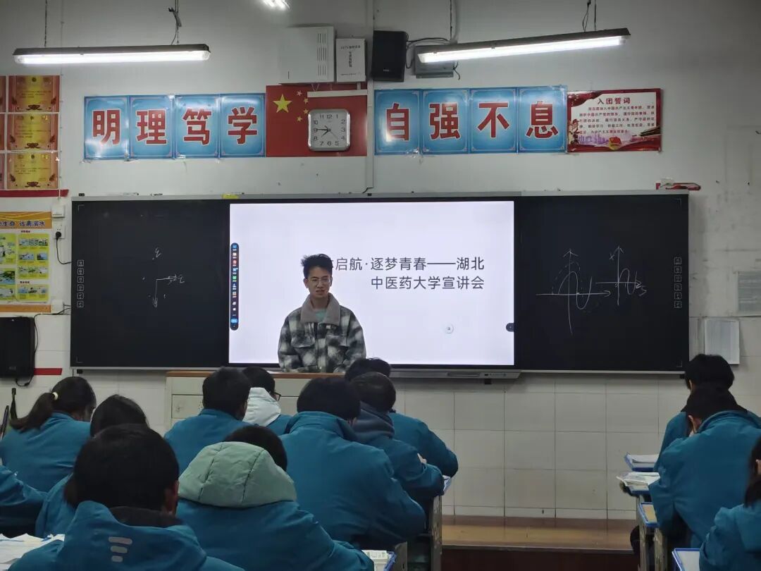 宣讲时,我讲述了湖中医的办学历史与优势:1958年创办的深厚底蕴、中医学与中药学两大王牌专业的实力;还有四季如画的校园风光、先进的教学设施和丰富多彩的校园文化。随后我结合自身经历,讲述了时间管理与心态调整的重要性,希望能为他们的高考之路助力。