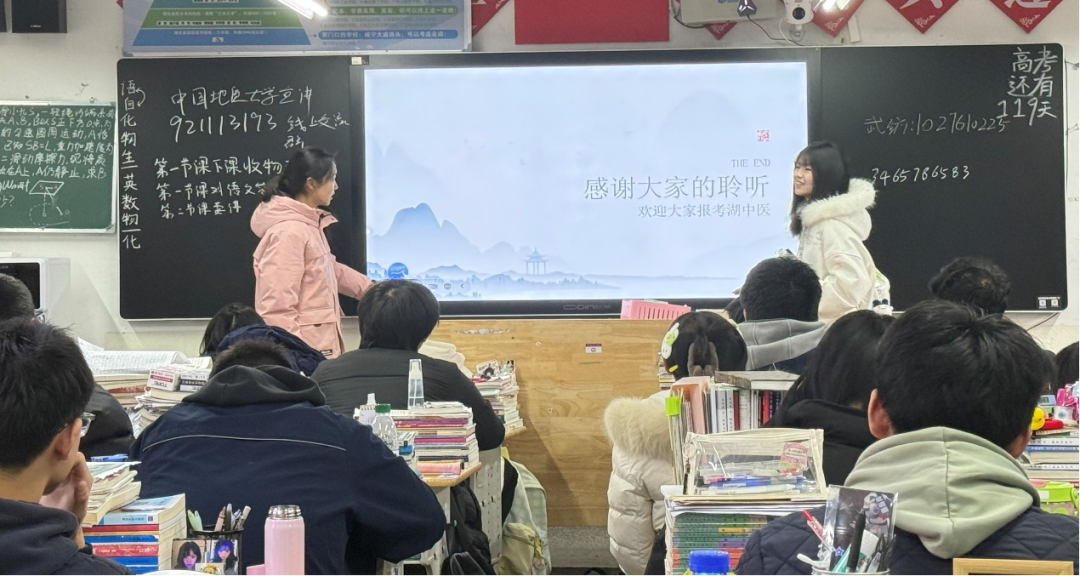 此次返校宣讲,让我更加感恩高中母校的培育,也愈发自豪于湖中医人的身份。这次宣讲极大地锻炼了我。这段经历让我懂得责任与传承的重量,未来我会带着这份初心,继续学好中医药知识,参与更多这样的活动,努力成为能担当、有温度的传递者,将湖北中医药大学的魅力传递给更多怀揣梦想的学弟学妹,助力他们找到理想的求学方向。