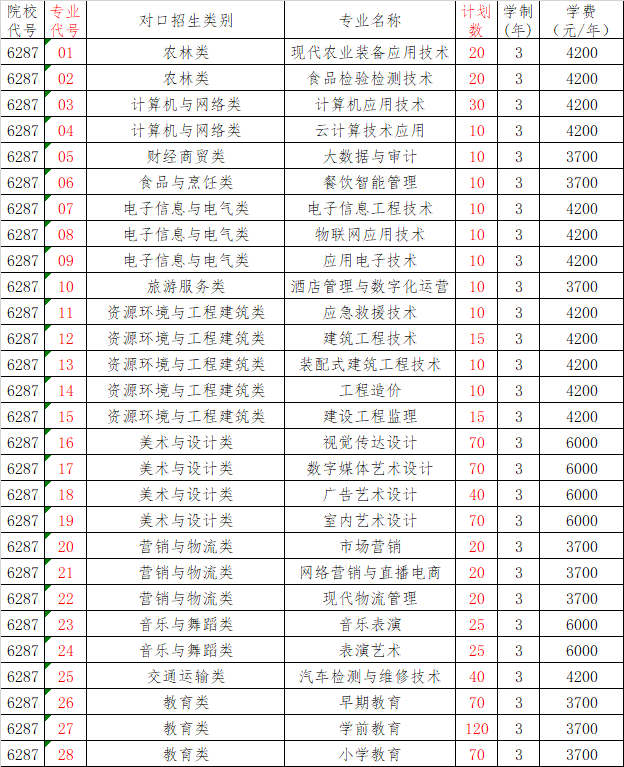 2026年对口升学志愿填报专业代码及专业计划表