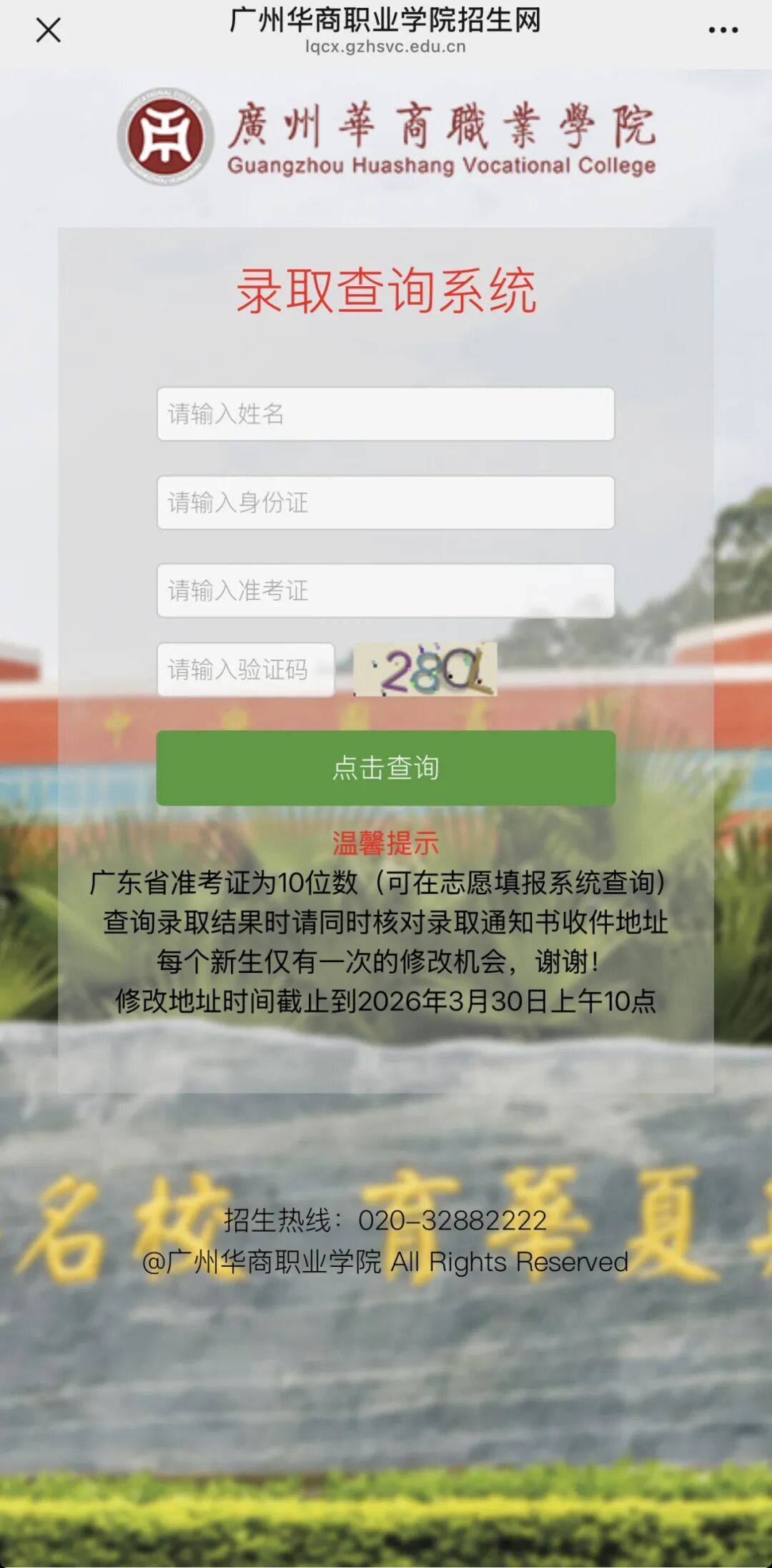 重要发布|广州华商职业学院2026春季高考最低投档分已出炉!附录取查询方式!