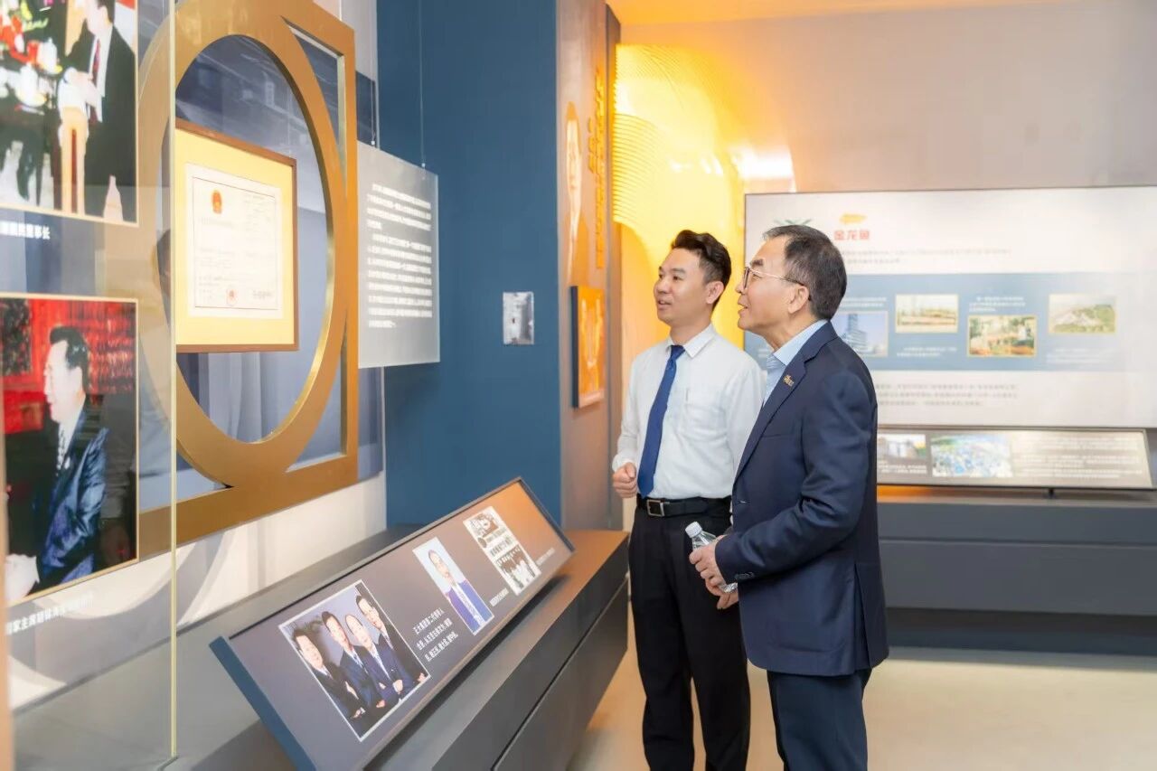 代表团一行首先参观了世界华商博览馆。作为全国首个以海外华商群体为主题的博览馆,它不仅是华商精神的展示窗口,更是我校“以商立校”办学理念的实体化呈现。博览馆将华商诚信经营、敢为人先的真实商业案例转化为生动的商科教学资源,使学生在文化熏陶中感悟职业伦理与商业智慧。学校正是依托这一独特的华商文化积淀,将“商科底色”融入人才培养全过程,实现从文化浸润到专业育人的自然升华。